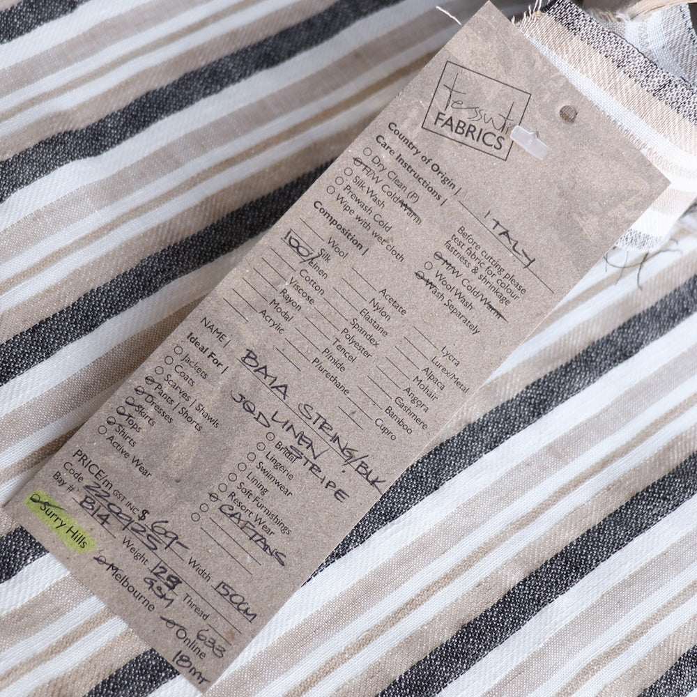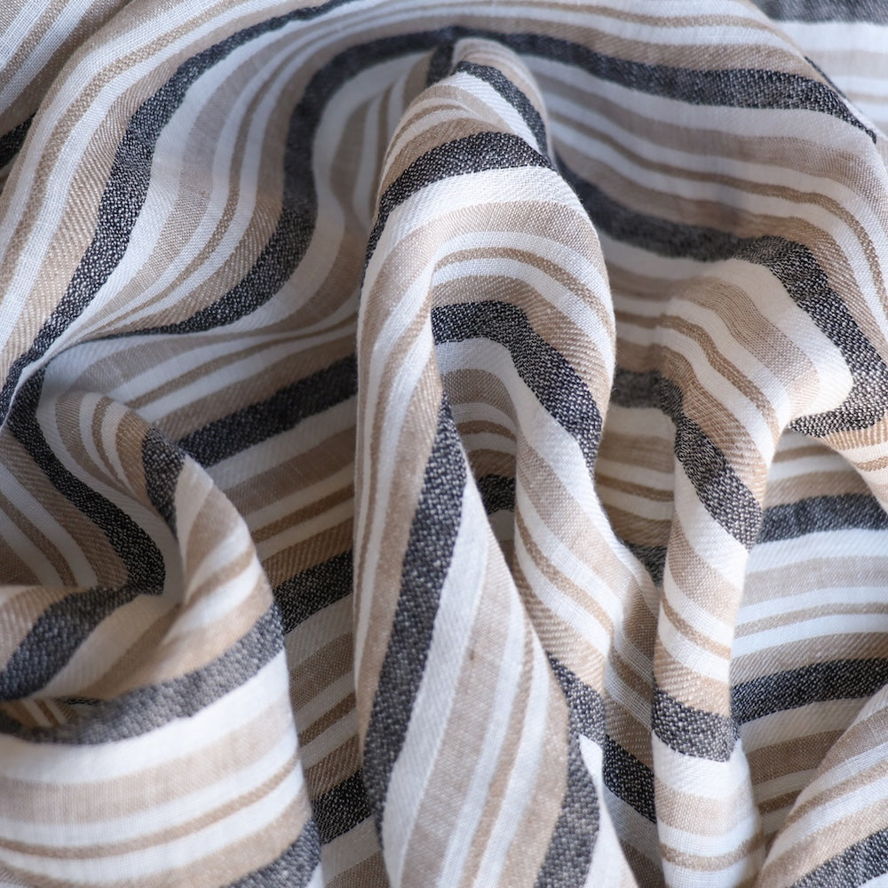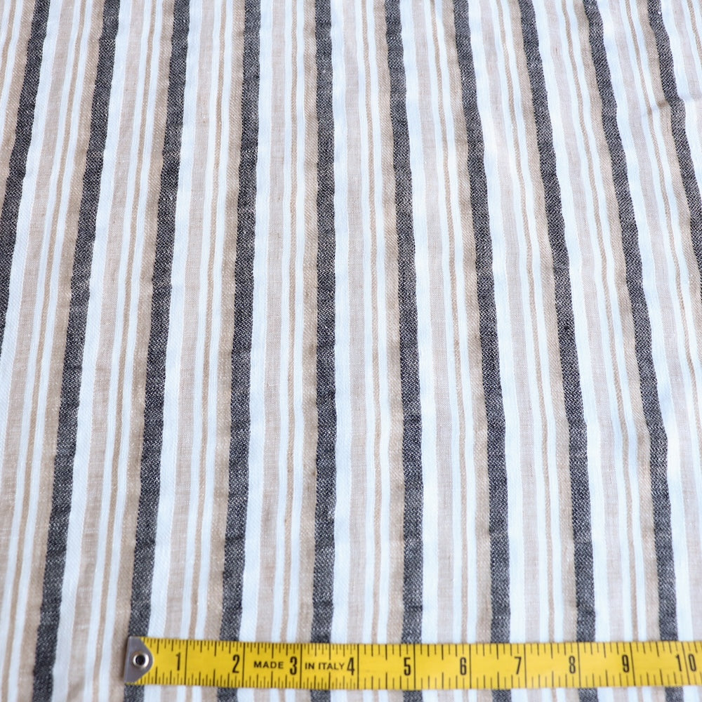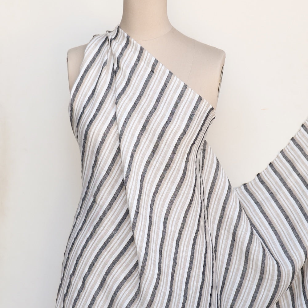 Italian black/string/white yarn-dyed jacquard striped 100% linen