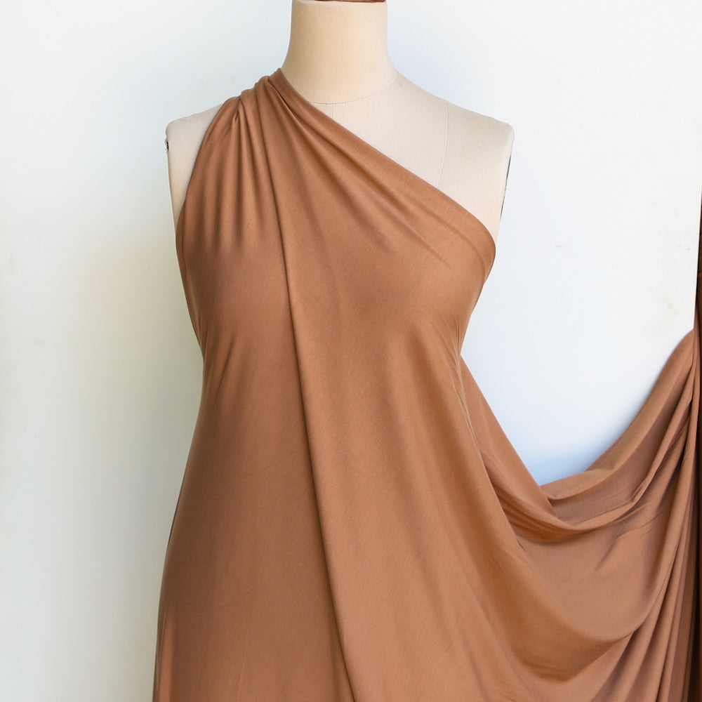 Quality tawny brown 92% viscose bamboo 8% elastane heavy jersey