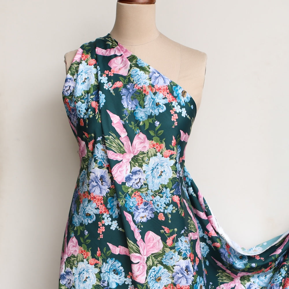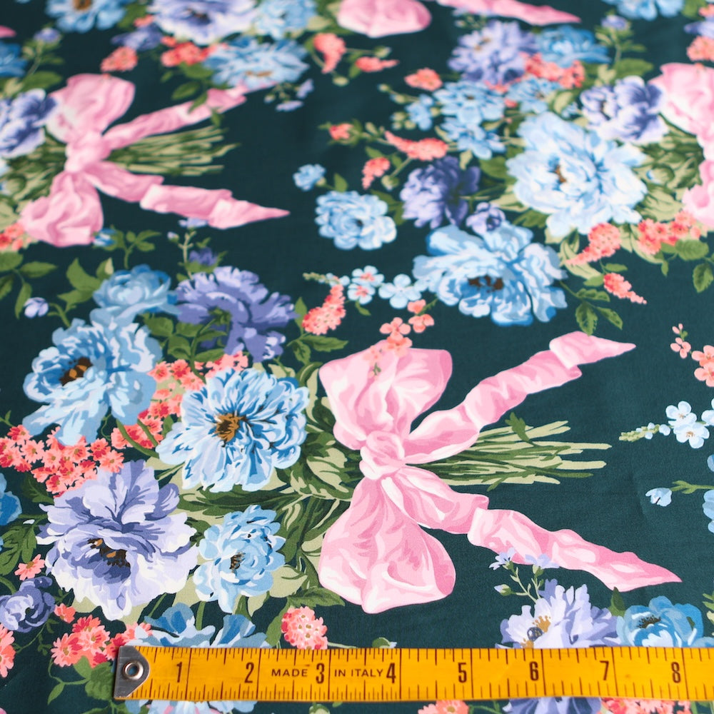 Liberty Fabrics & Bridgerton collection teal/pink bows/blue floral printed 100% cotton tana lawn
