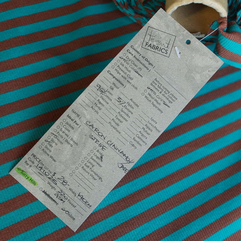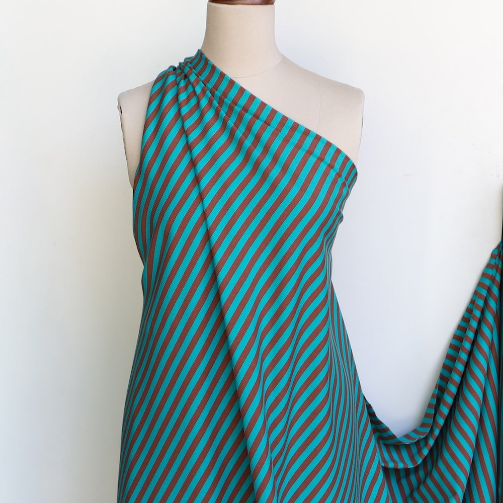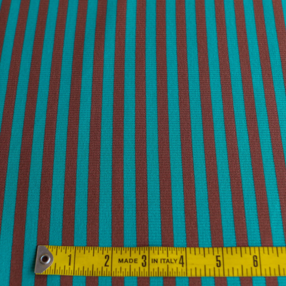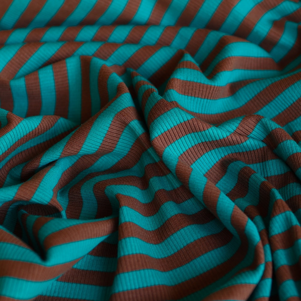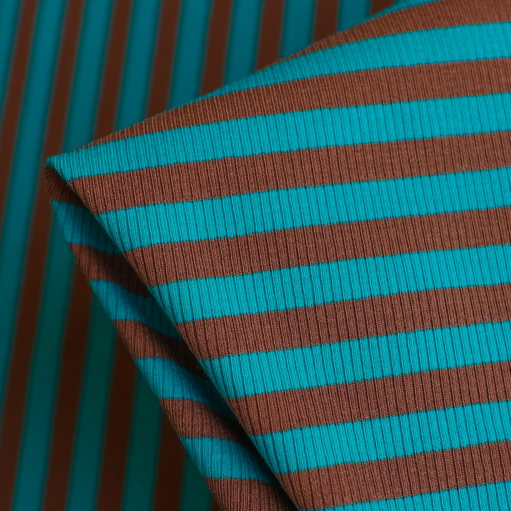Cinnamon/jade green striped 95% cotton 5% elastane stretch rib knit