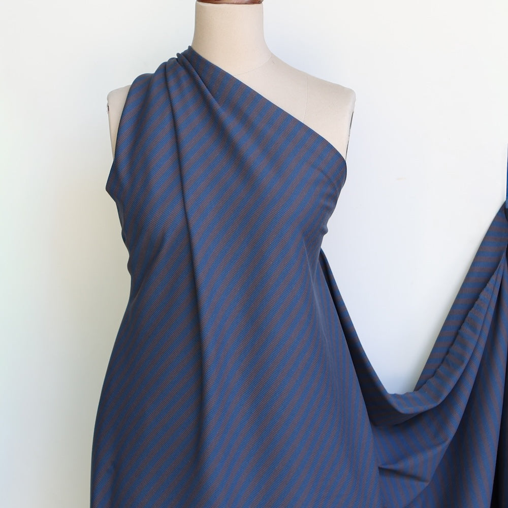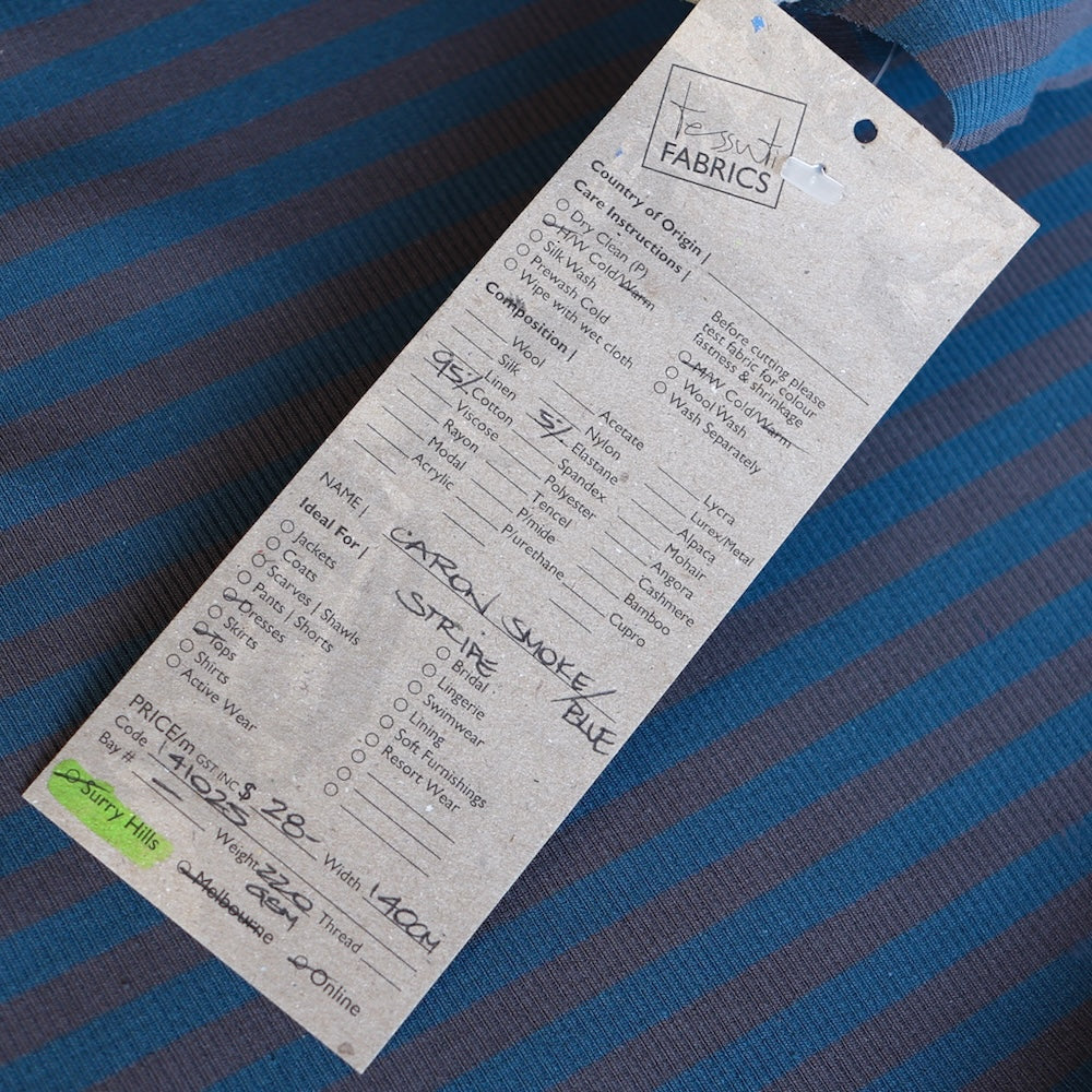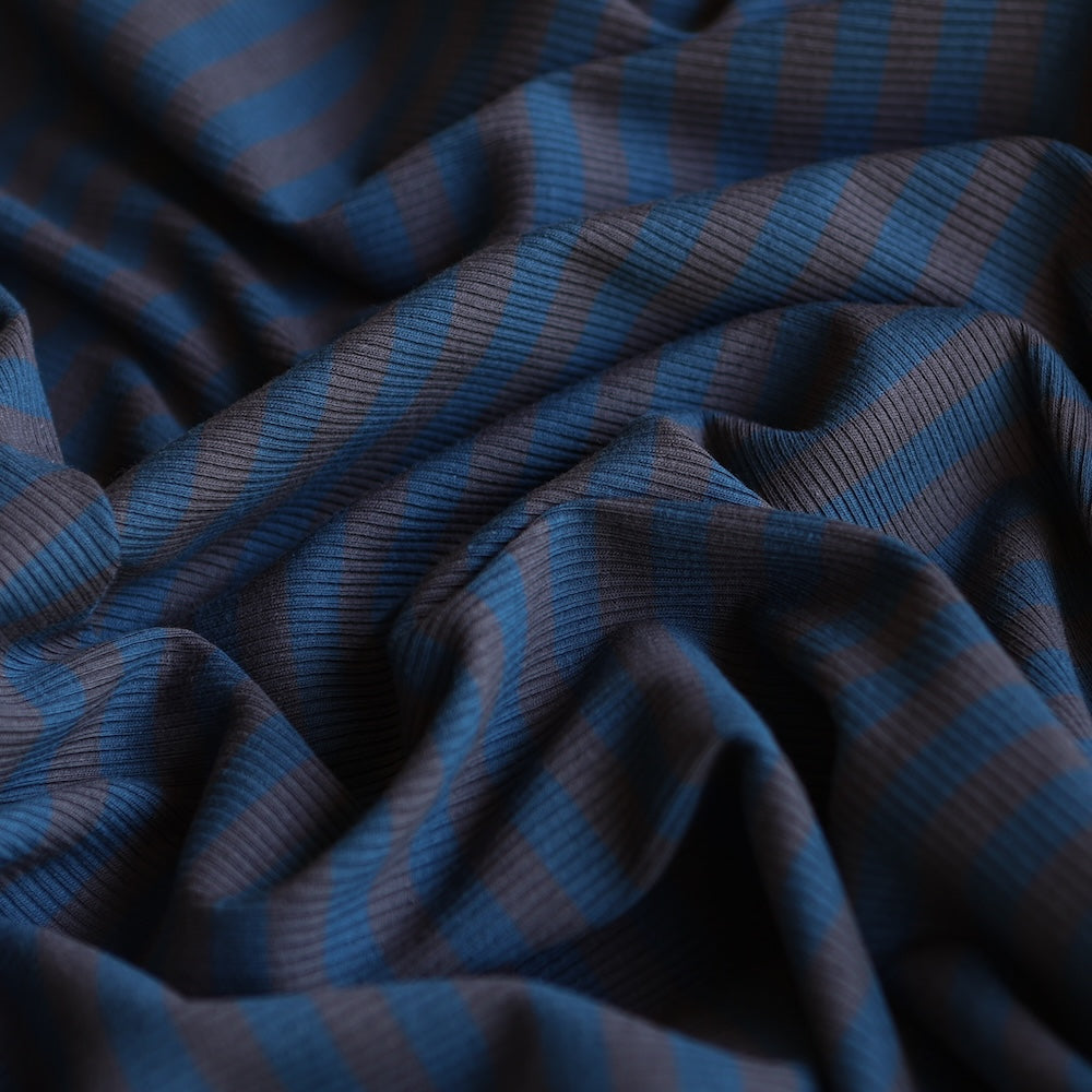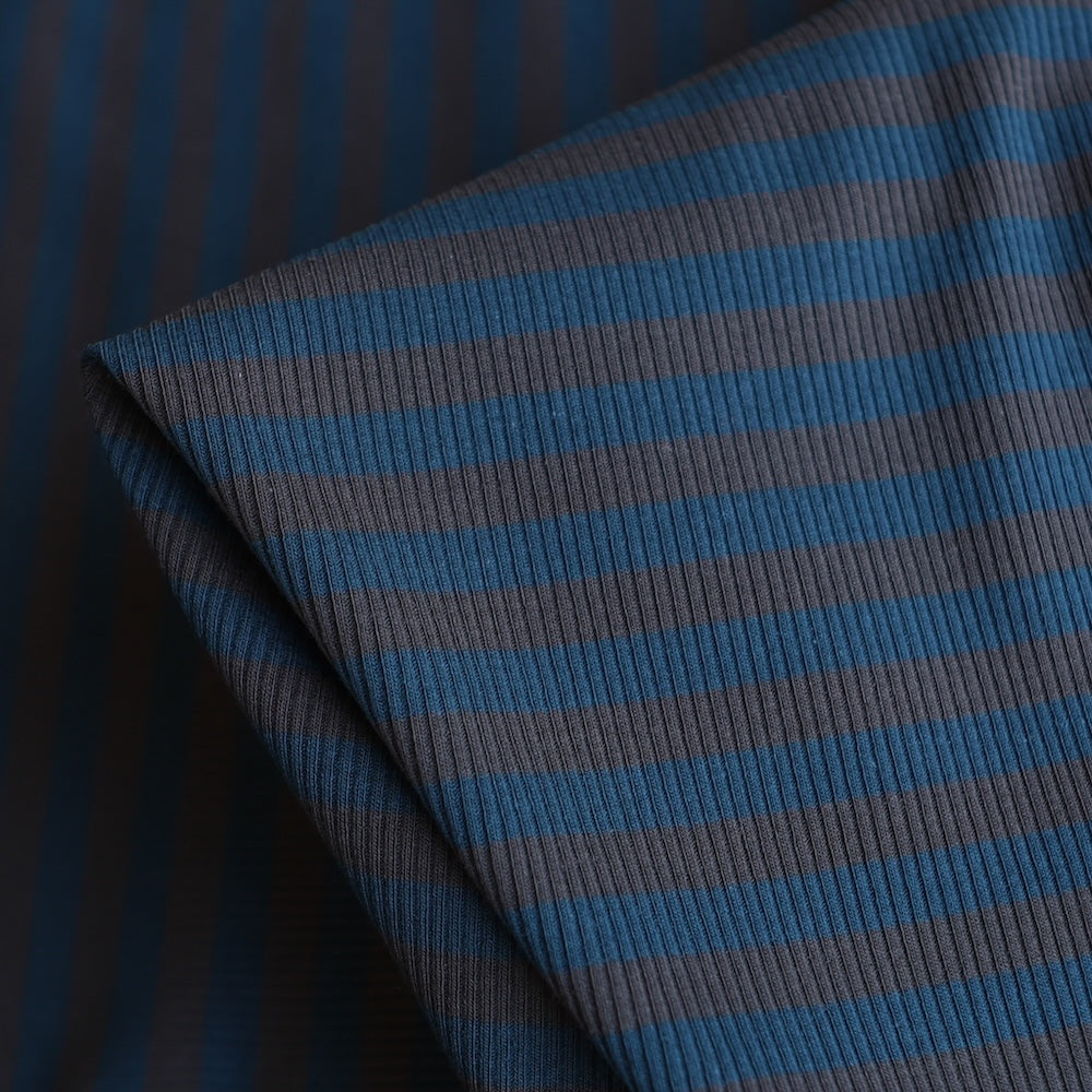 Smoke/blue striped 95% cotton 5% elastane stretch rib knit