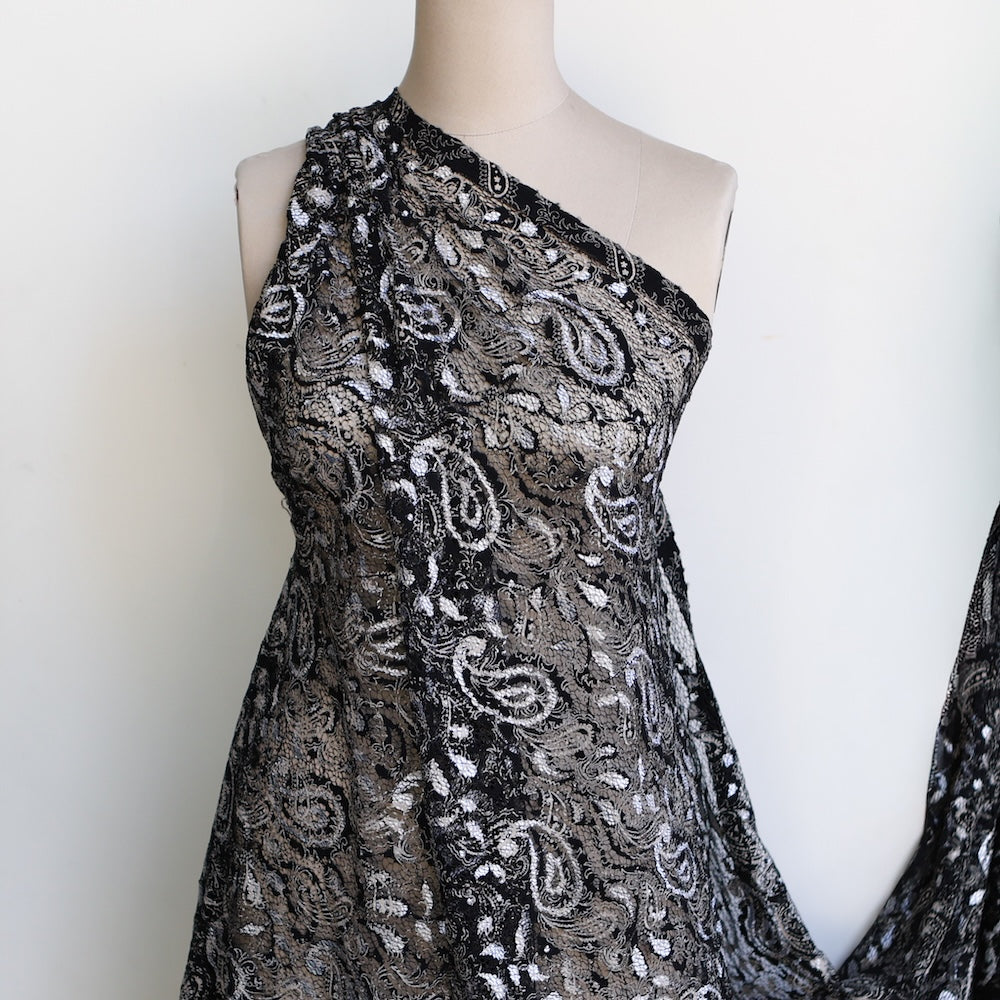 Black/ silver grey paisley print viscose/nylon/polyamide lace