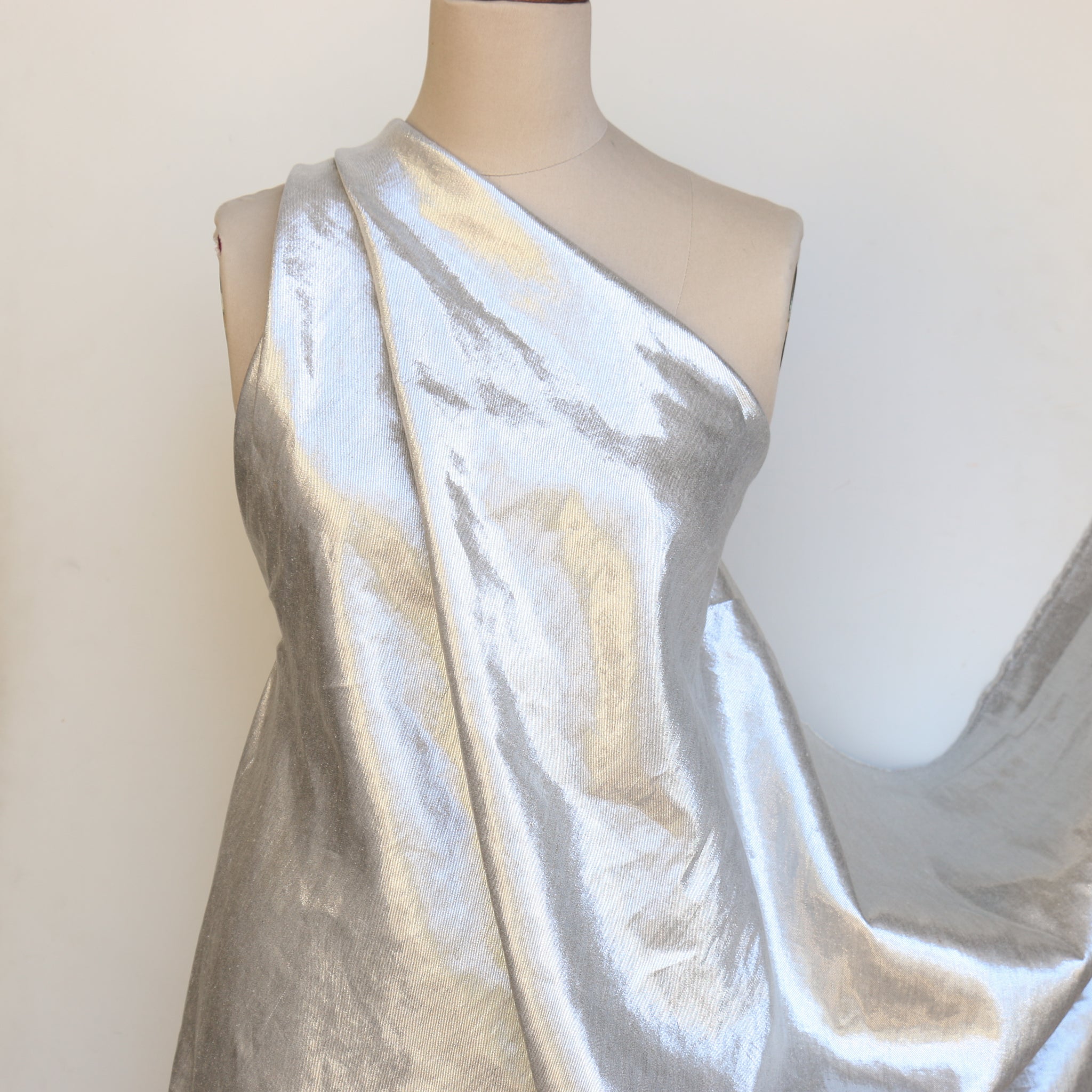 Italian designer string/silver lurex yarn-dyed 88% linen 12% poly lurex metal