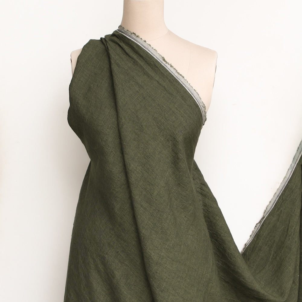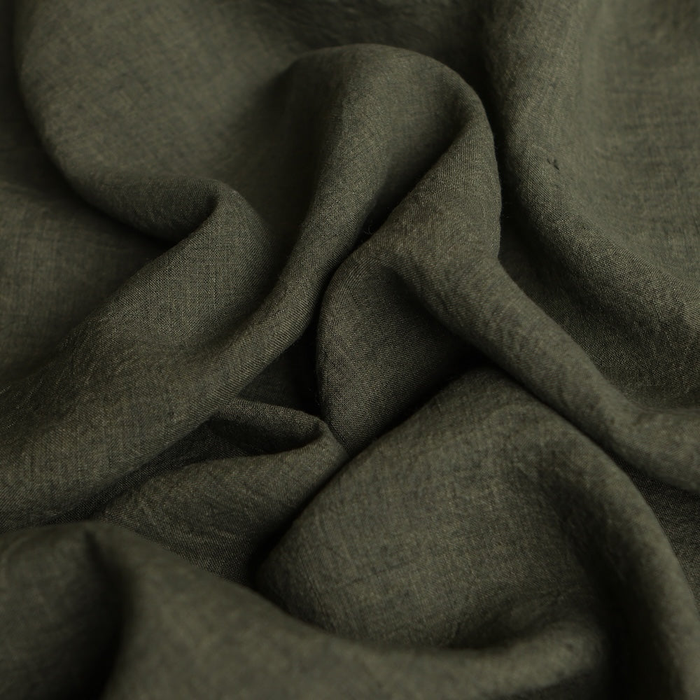 Kale green yarn-dyed washed 100% linen