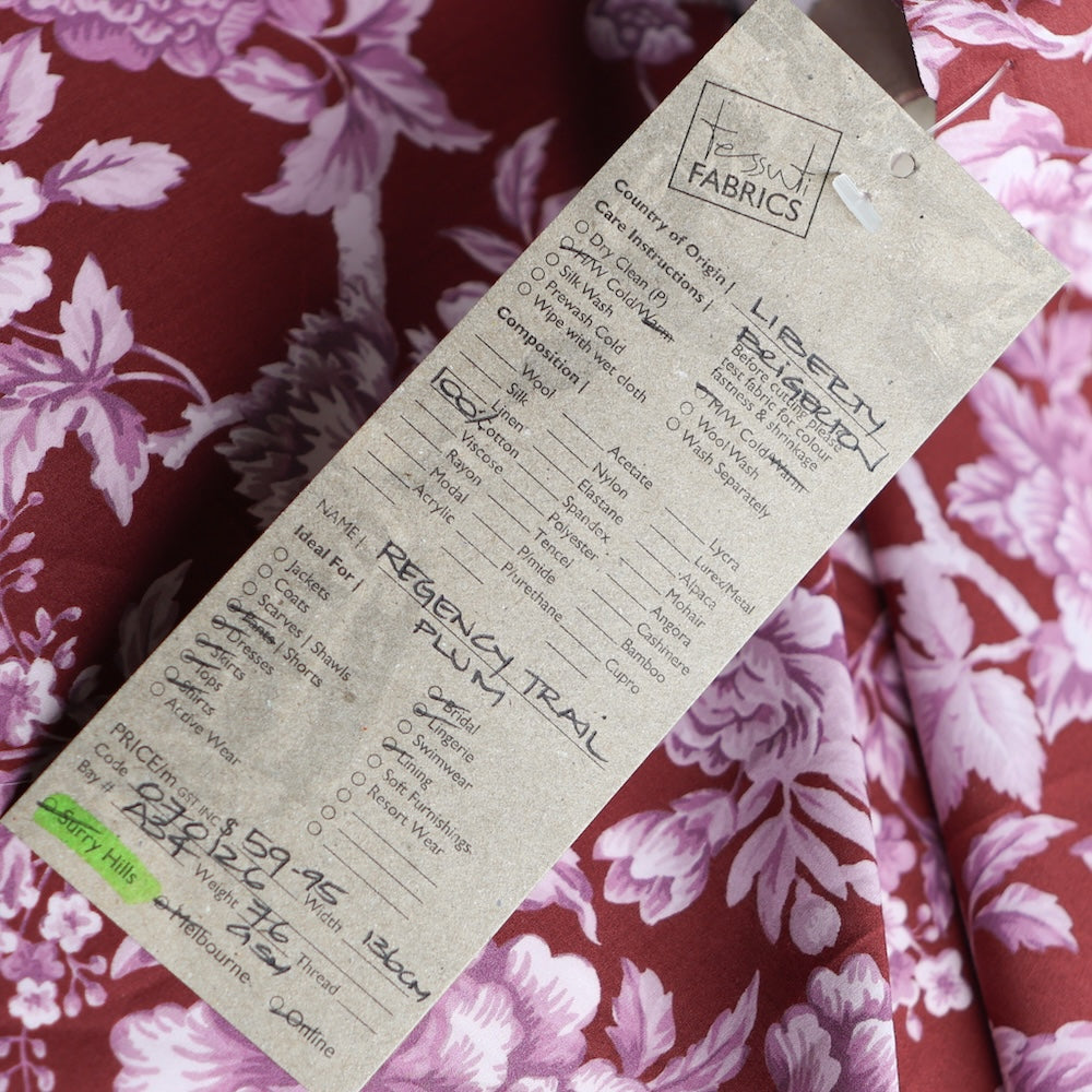 Liberty Fabrics & Bridgerton collection wine/plum floral printed 100% cotton tana lawn