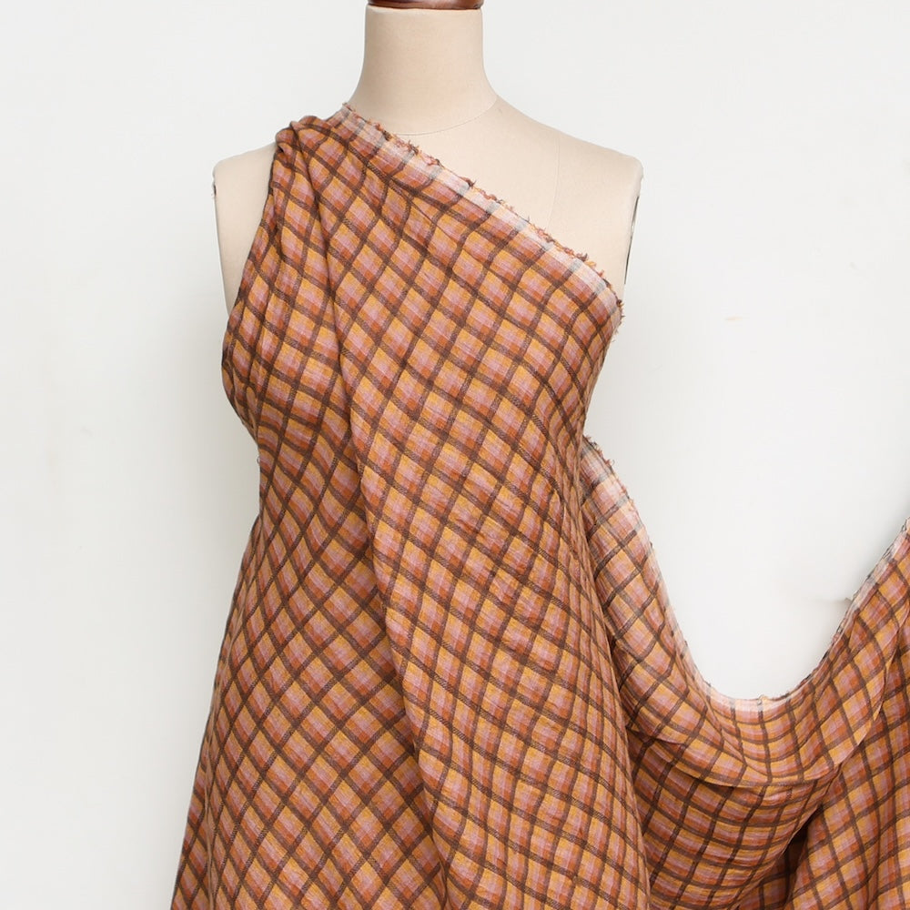 Rust/rose checked yarn-dyed 100% linen