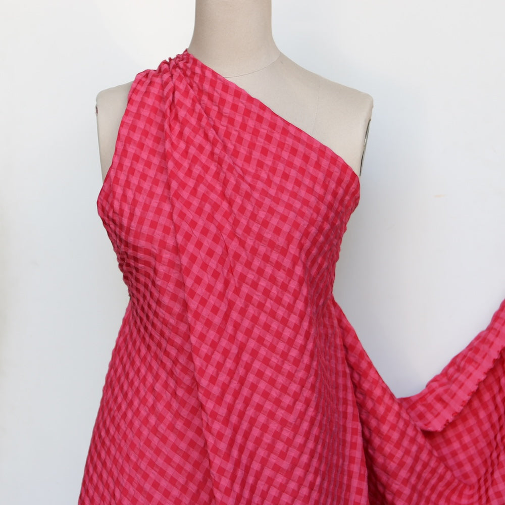 Italian coral/pink textured checked 55% cotton 45% rayon