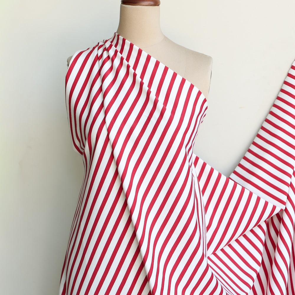 Quality Japanese red/off white striped opaque heavy weight 100% cotton knit