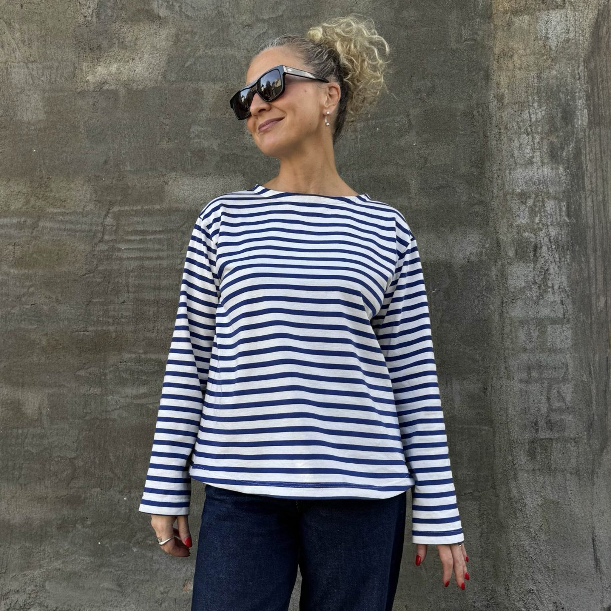 Perfect for less fitted Breton tops, boxy t-shirts and t-shirt dresses. Note: Suitable for our Myka Top Pattern. Not suitable for our Mandy Boat Tee Pattern