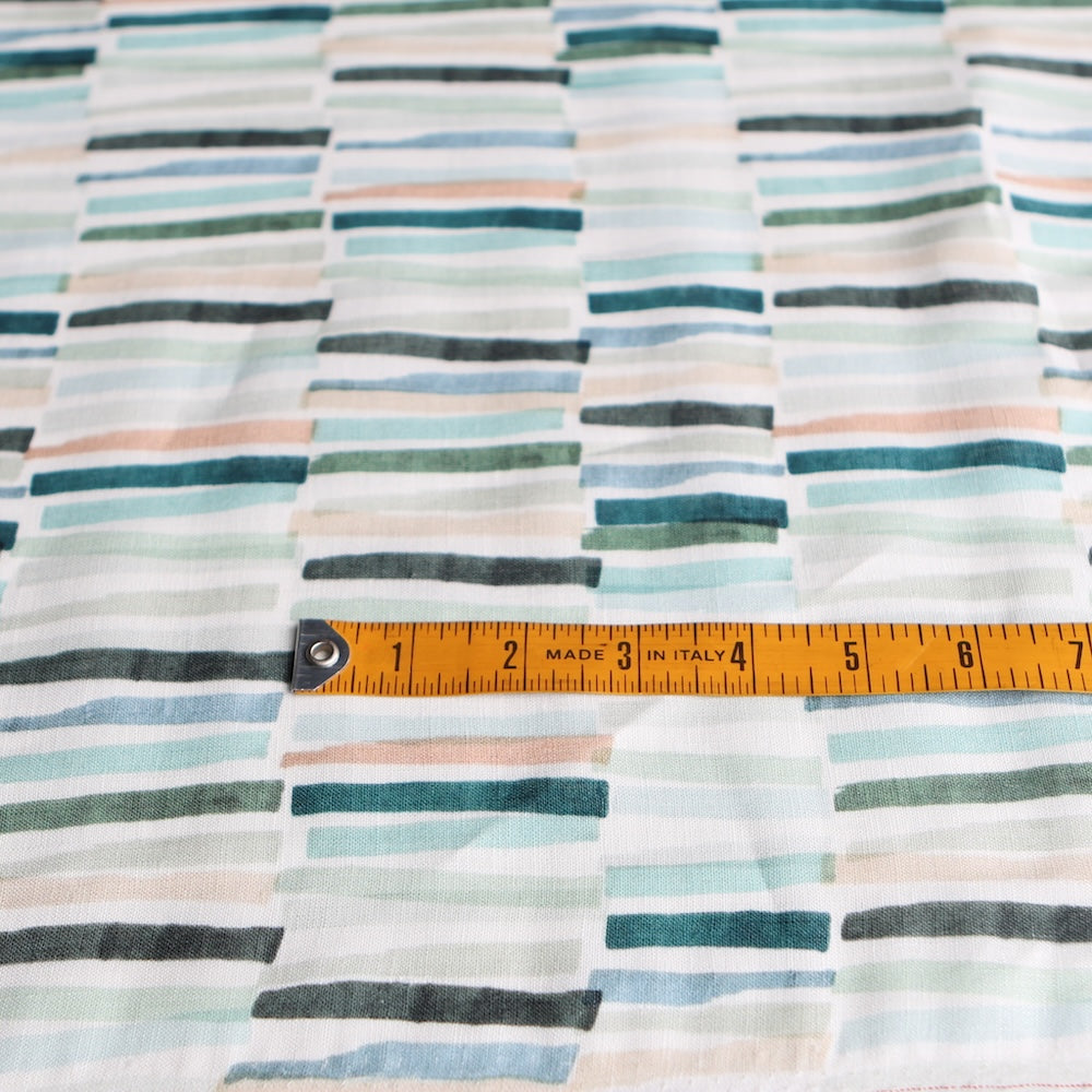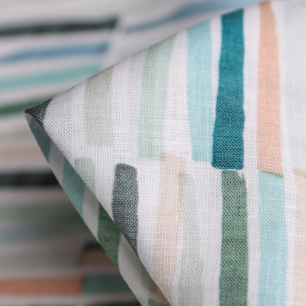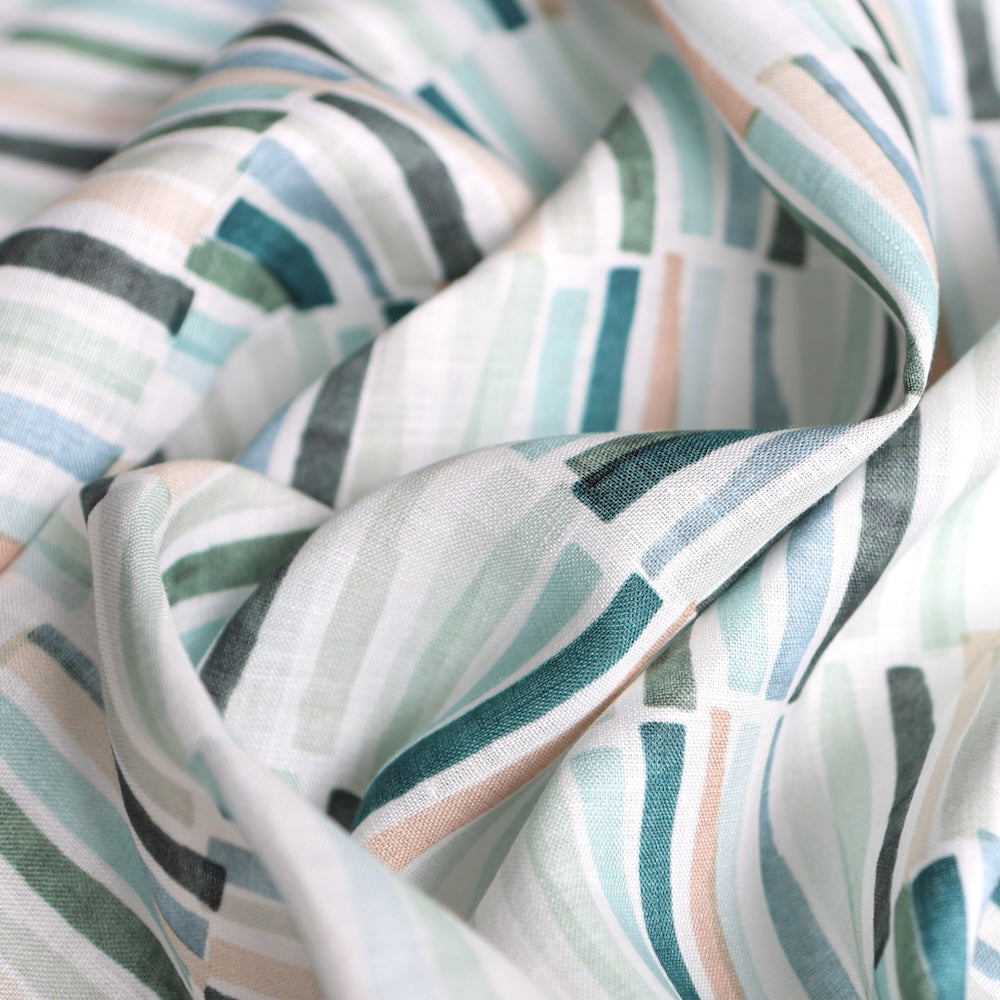 Teal/water/blush printed 100% linen
