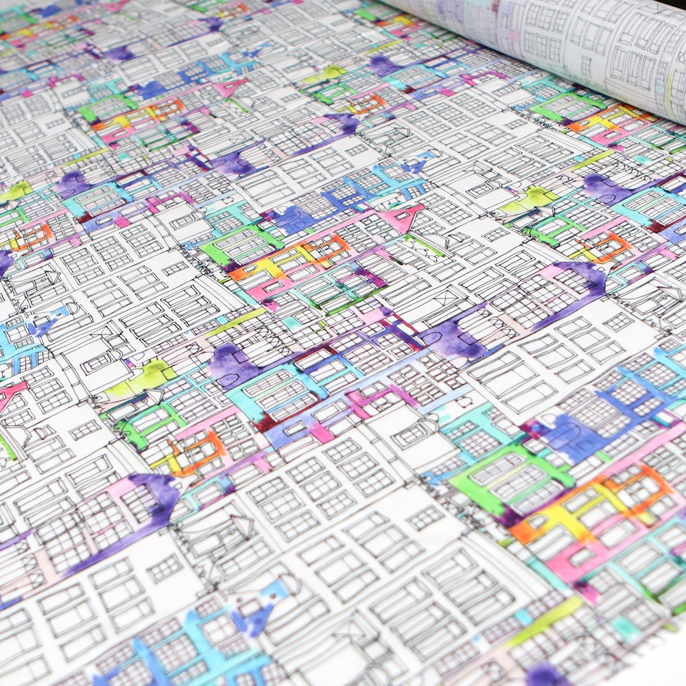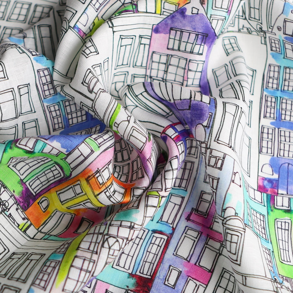 Amsterdam neighbourhood/multi coloured printed 100% linen