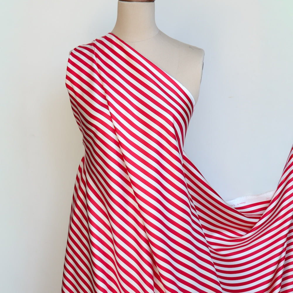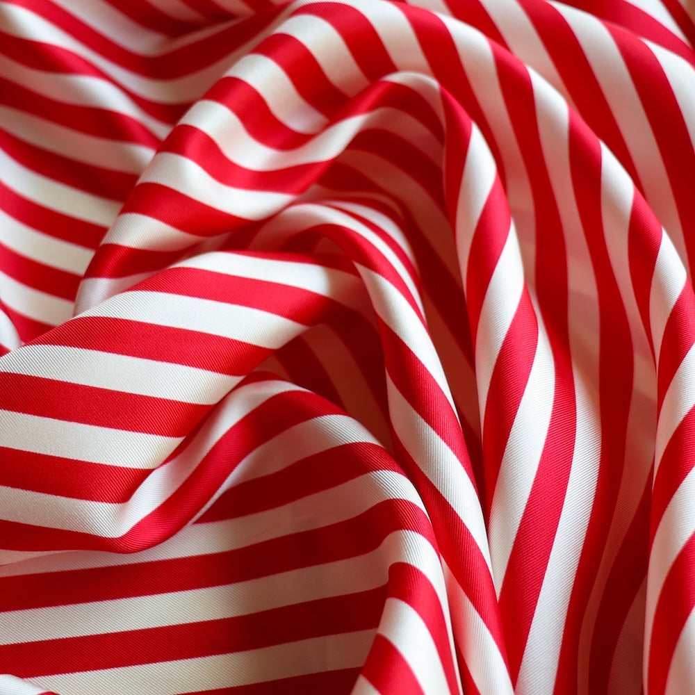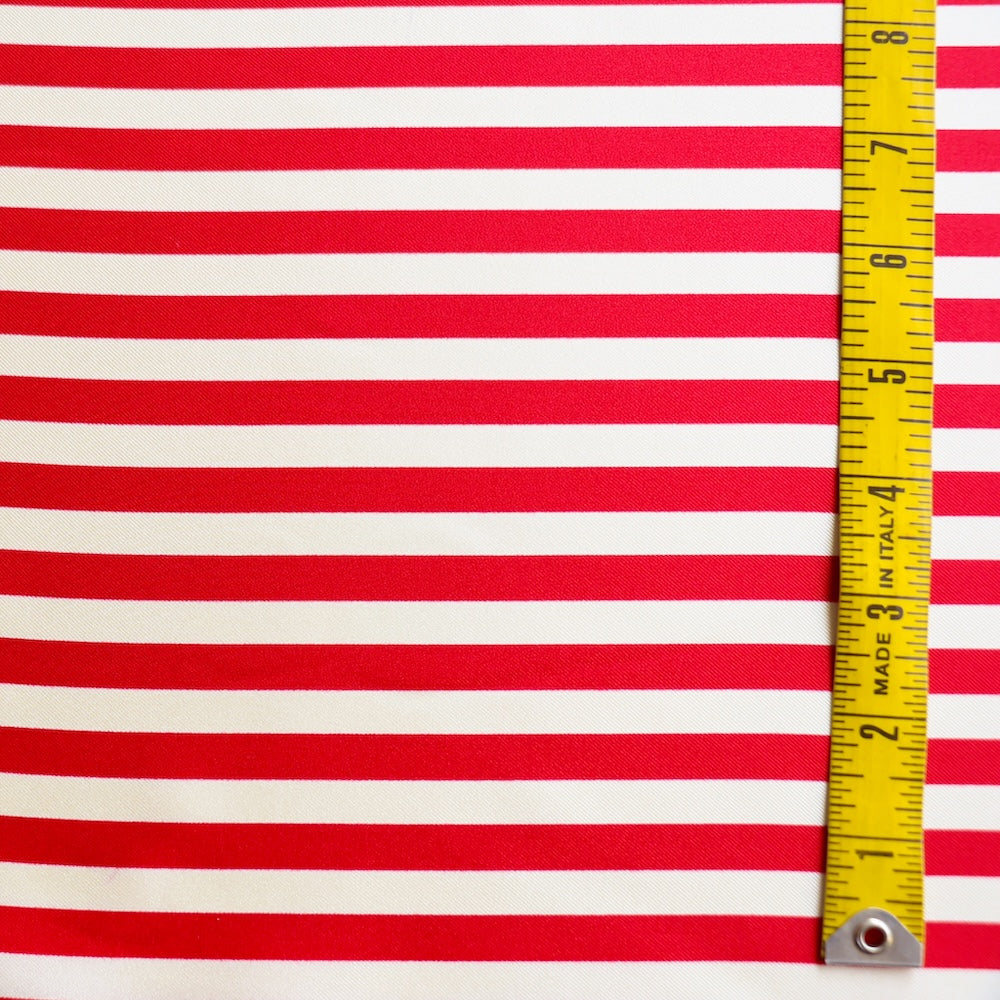 Italian red/vanilla striped 100% silk twill