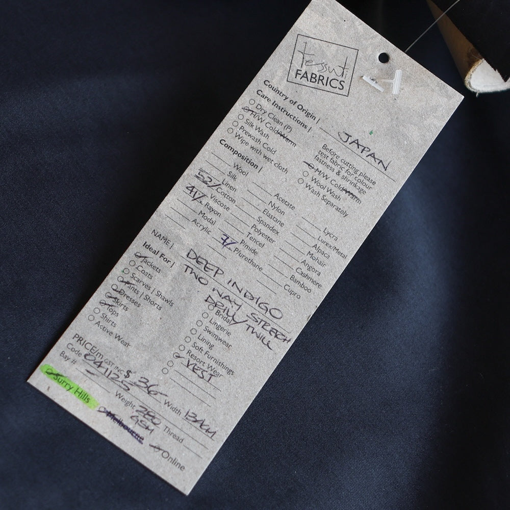 Japanese navy 52% cotton 41% rayon 7% polyurethane 2-way stretch woven