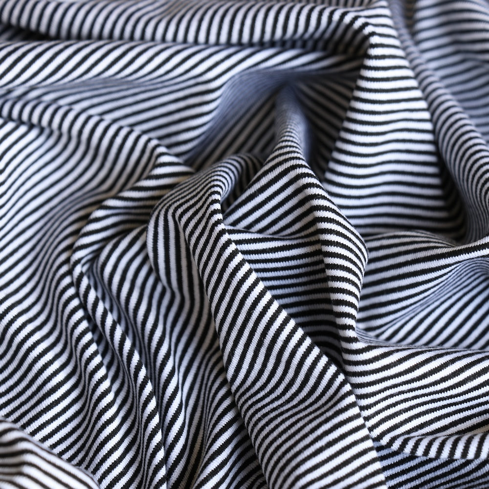 Black/white mini striped 92% viscose 8% elastane jersey
