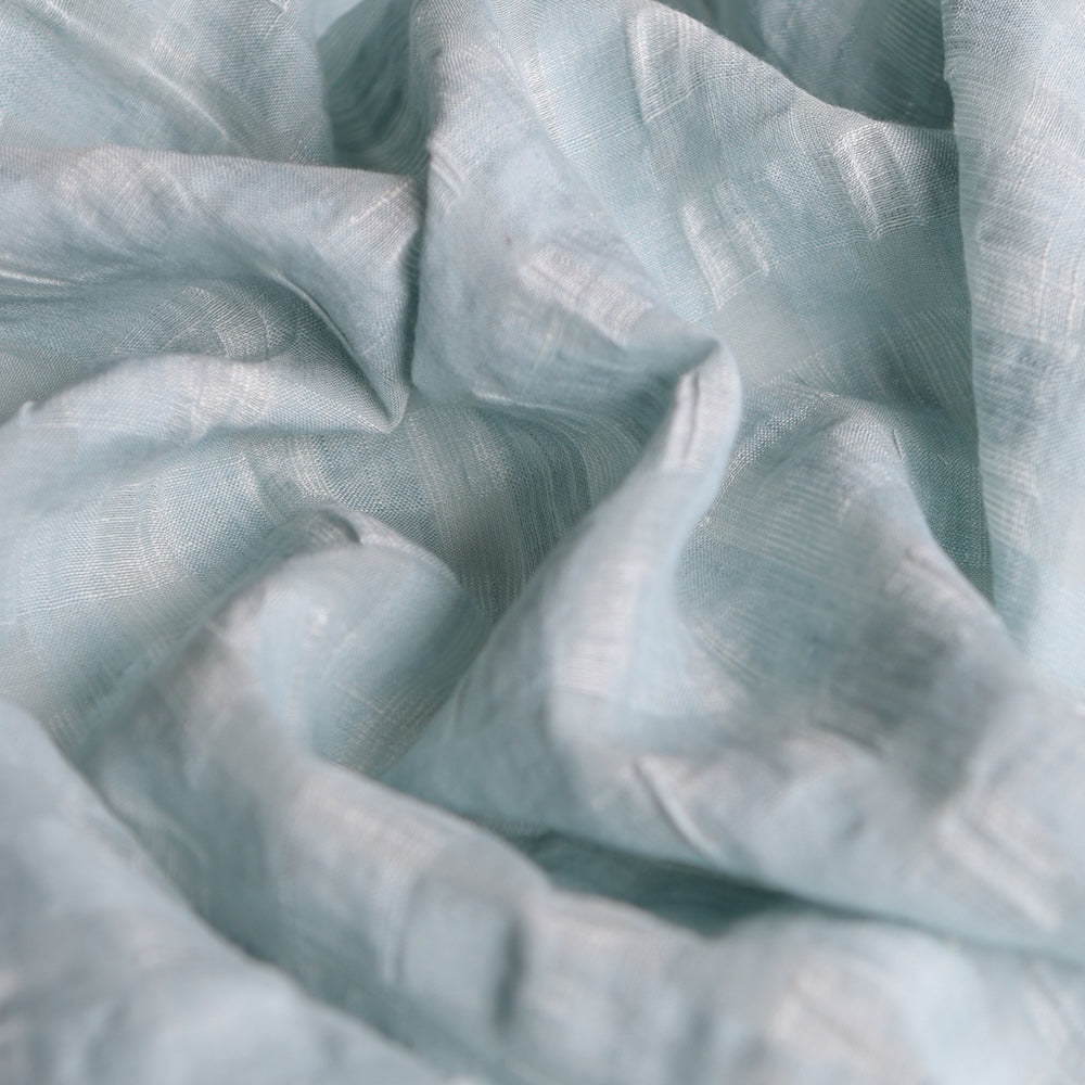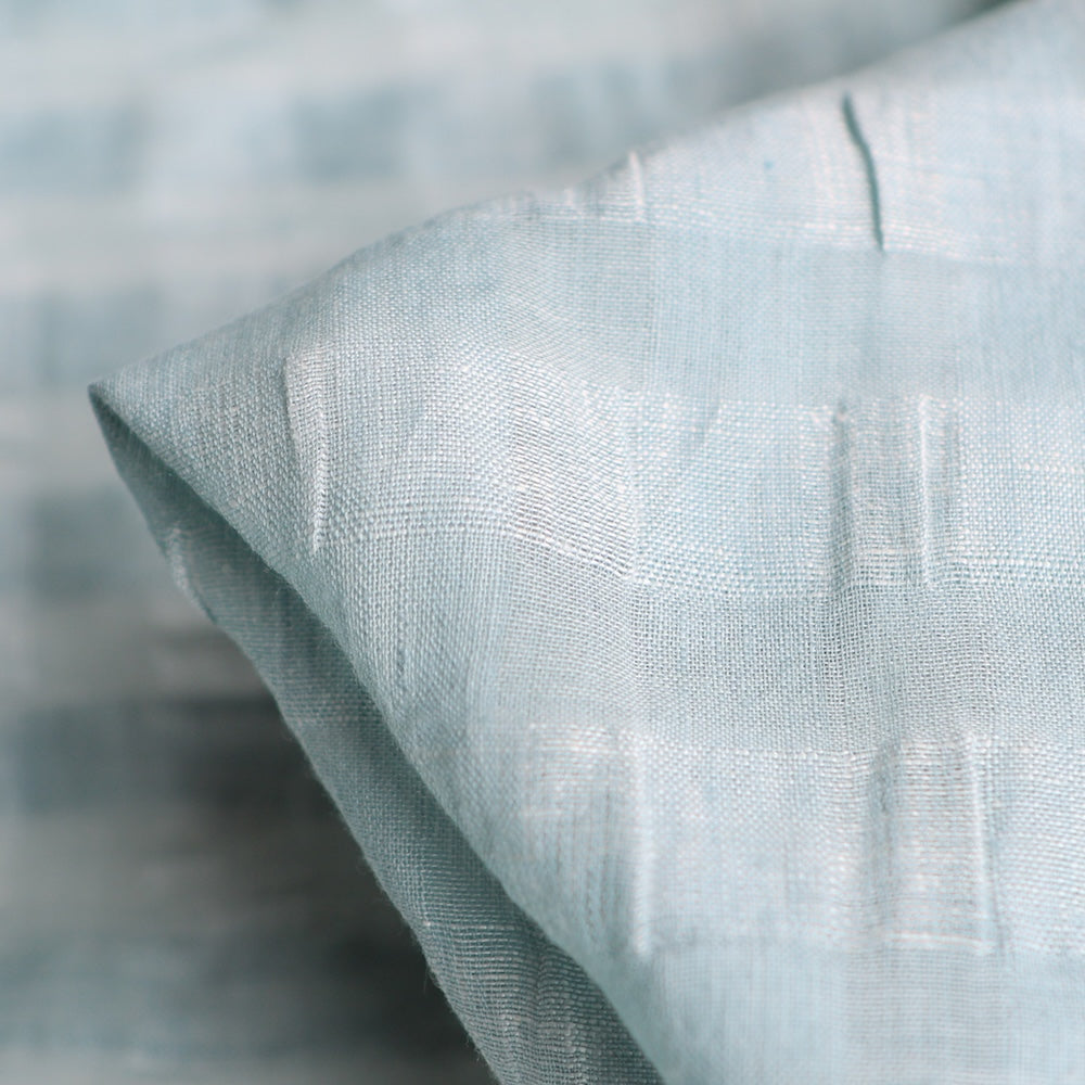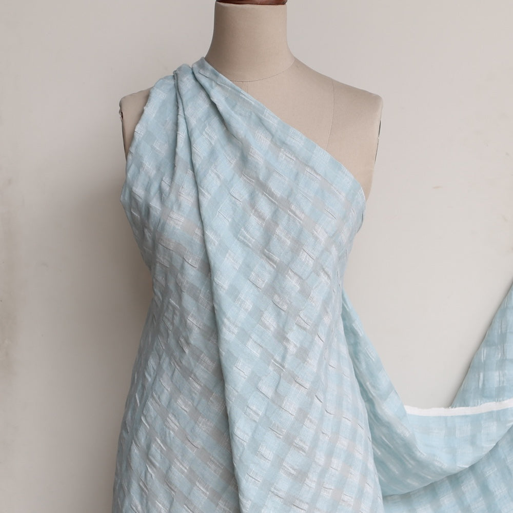 Water/Eau de nil seersucker checked 75% linen 25% cotton