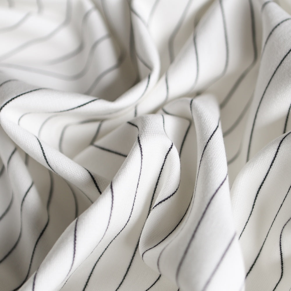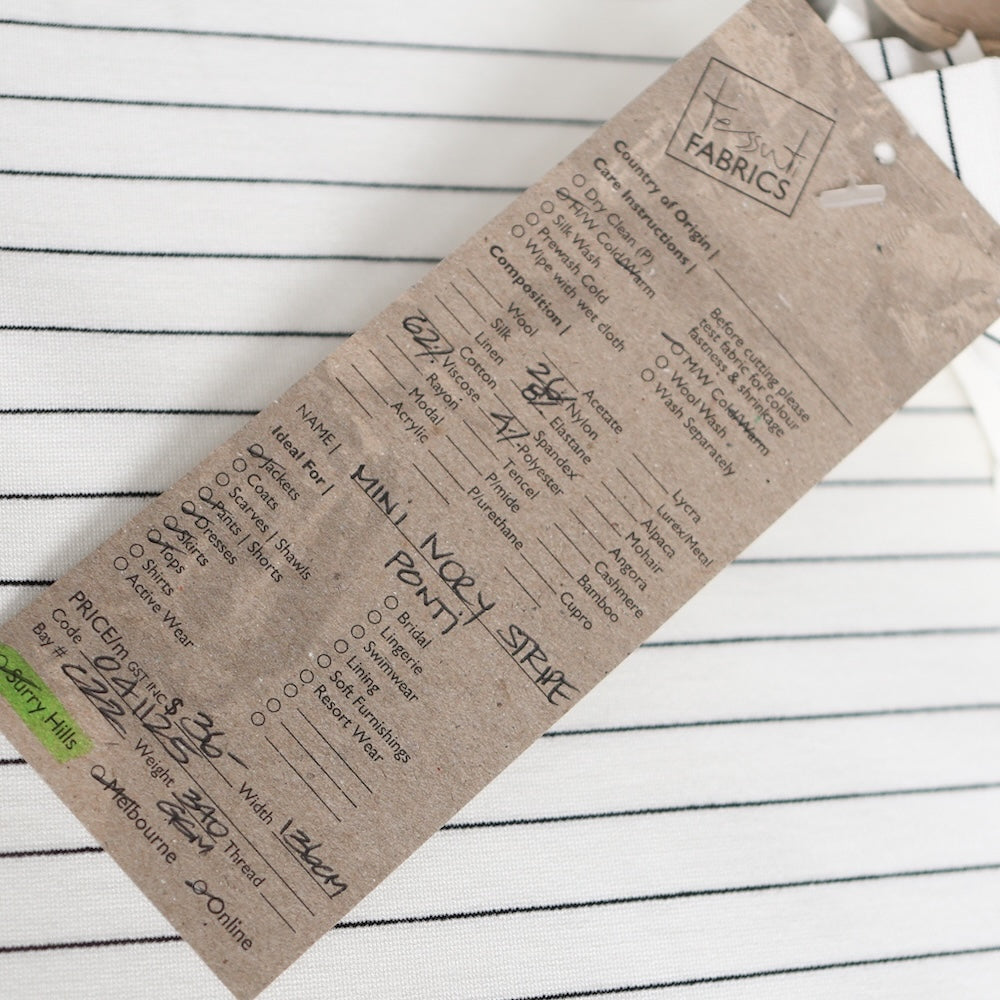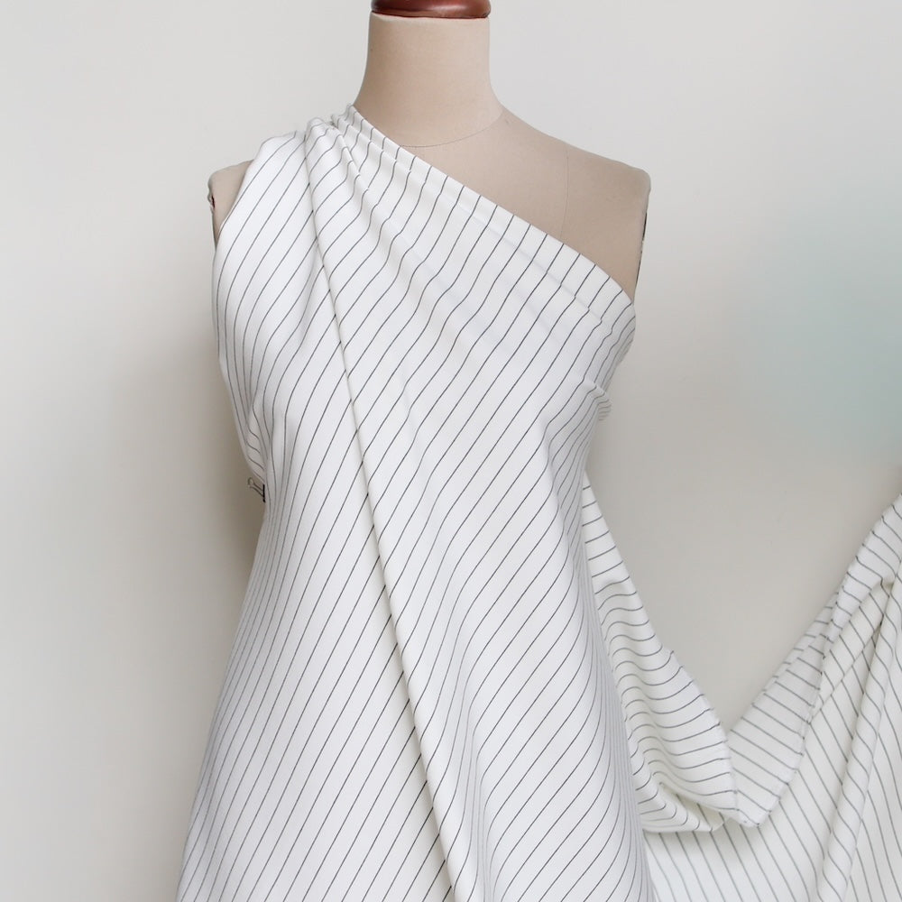 Ivory/black fine stripe 62% viscose 26% nylon 8% elastane 4% polyester ponti knit