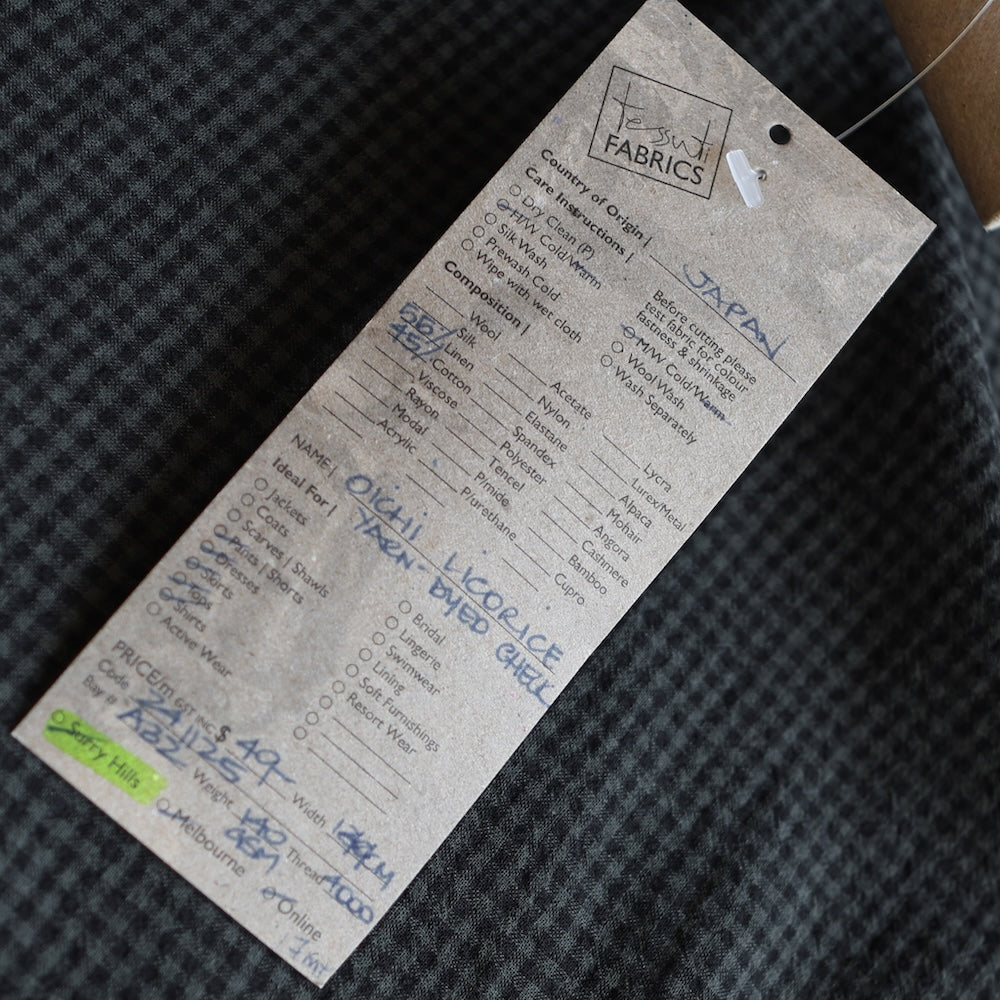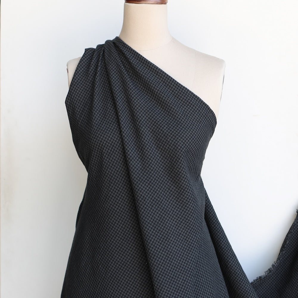 Japanese licorice grey/black yarn-dyed mini gingham check 55% linen 45% cotton