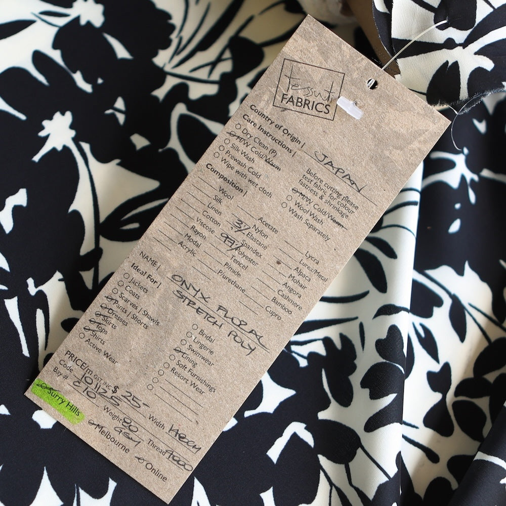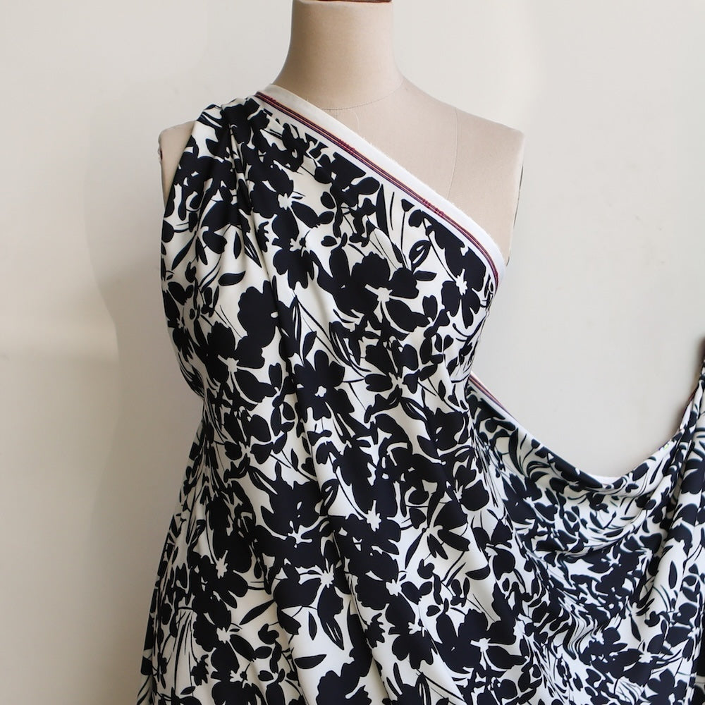 Japanese black/natural shadow floral printed Japanese technical 97% polyester 3% elastane