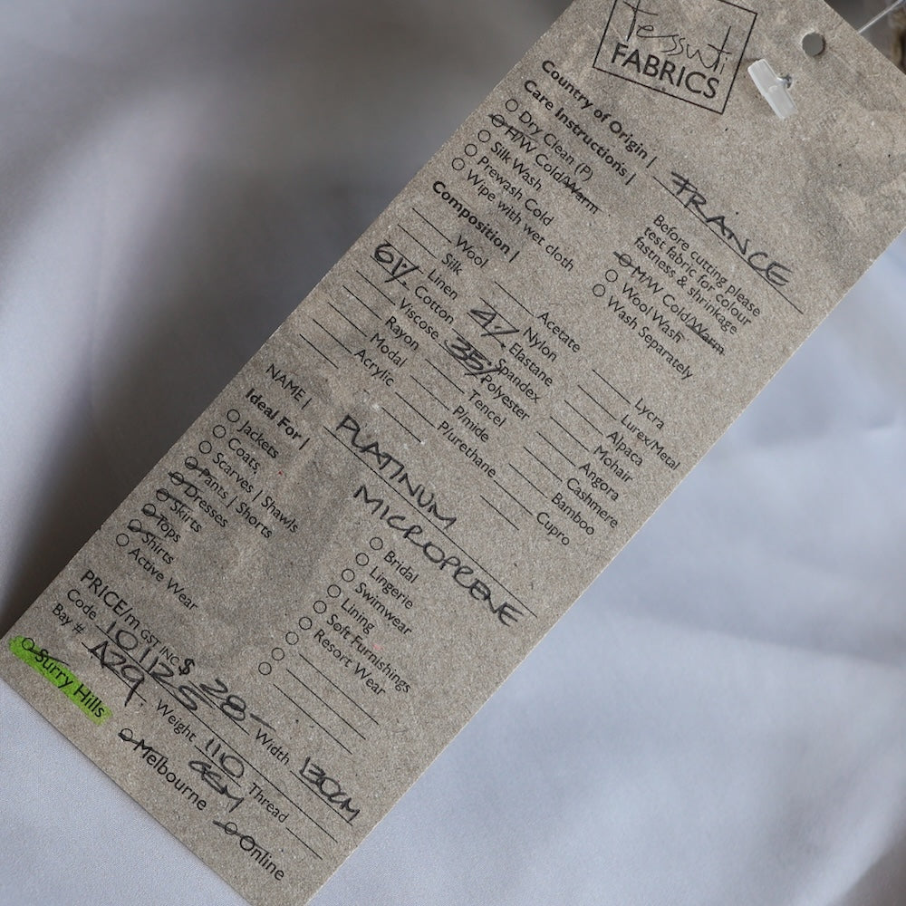 French platinum 61% cotton 35% polyester 4% elastane stretch microprene