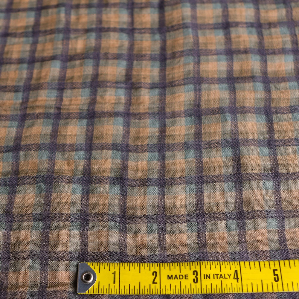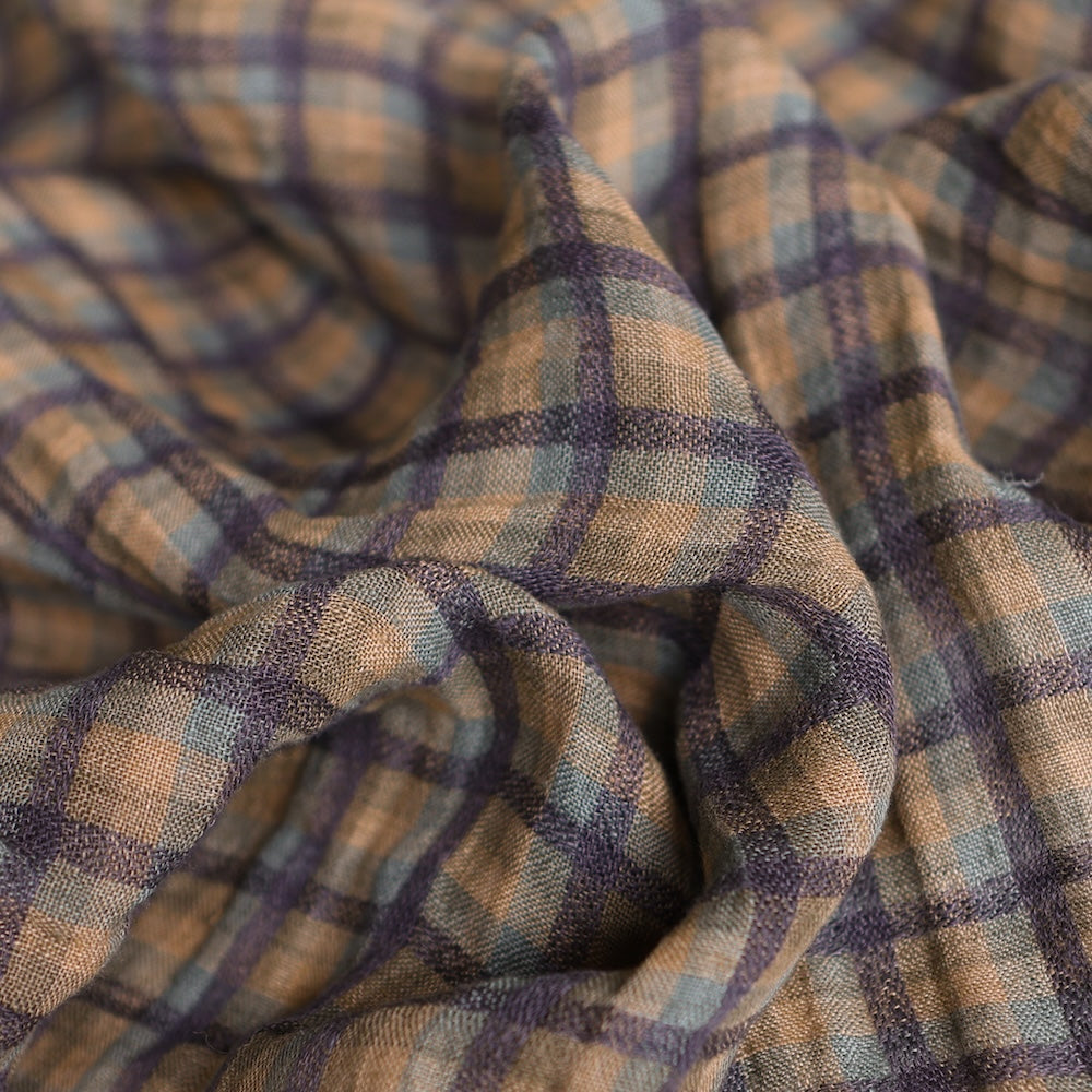 Khaki/tan checked yarn-dyed 100% linen