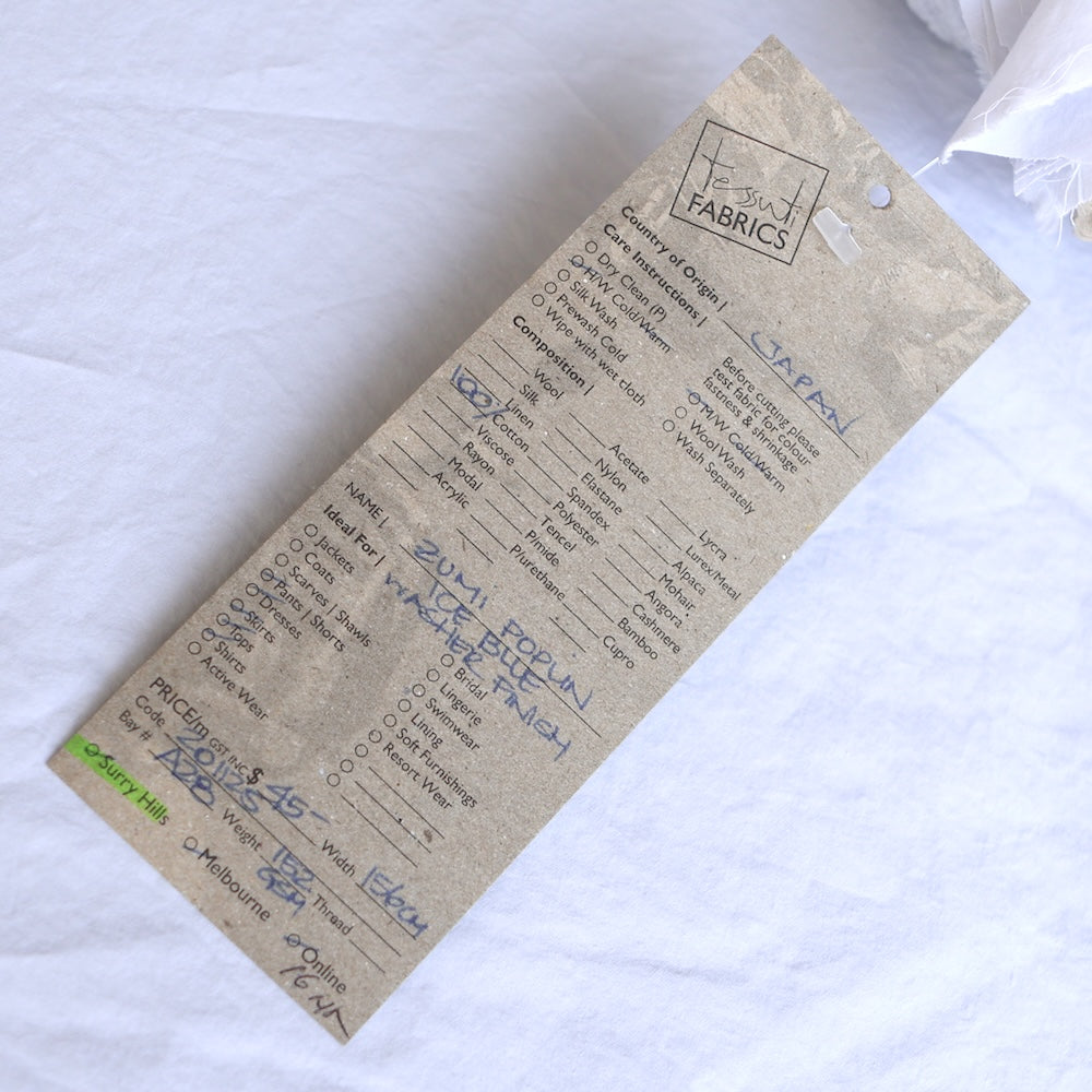 Zumi Poplin - Ice Blue Washer Finish
