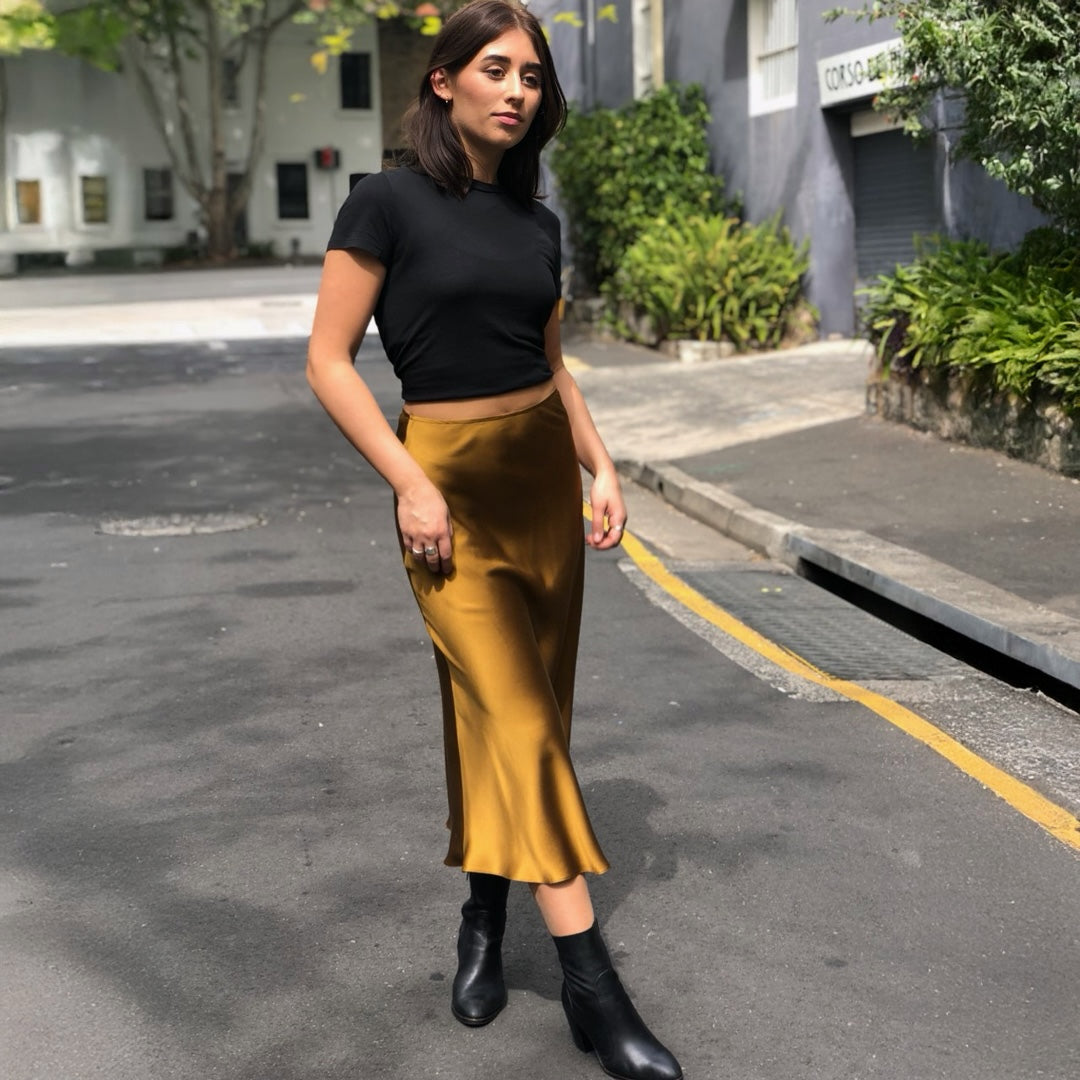 The Evie Bias Skirt is a floaty and flared midi-length bias skirt pattern which includes two versions. View A is finished with a bound waistline and side zipper opening and View B is a pull-on version with scalloped elasticised waist. Instructions are provided to achieve a narrow or fringed hem (linen only). This bias skirt is drafted to flatter the body and looks fabulous worn casually or dressed up.