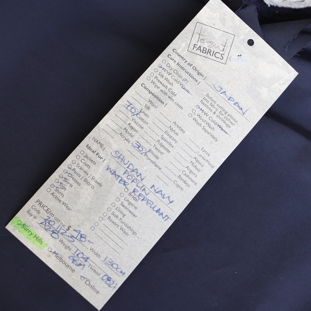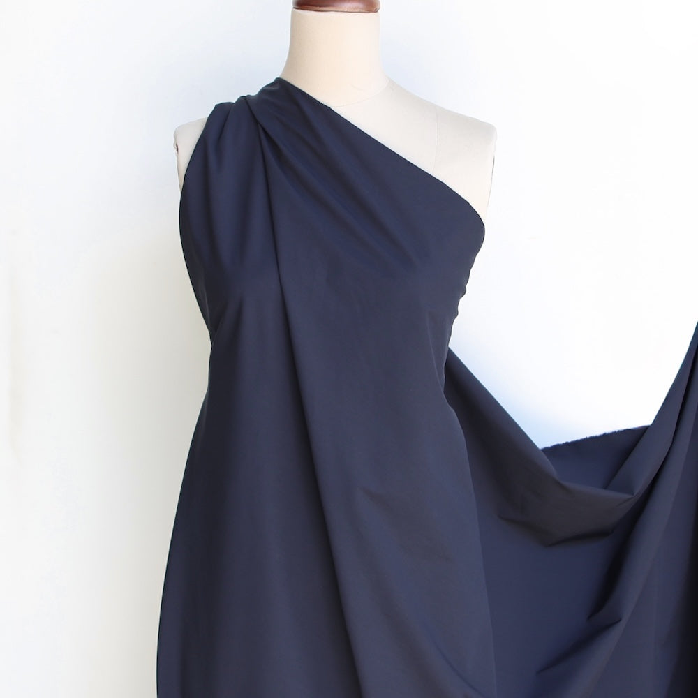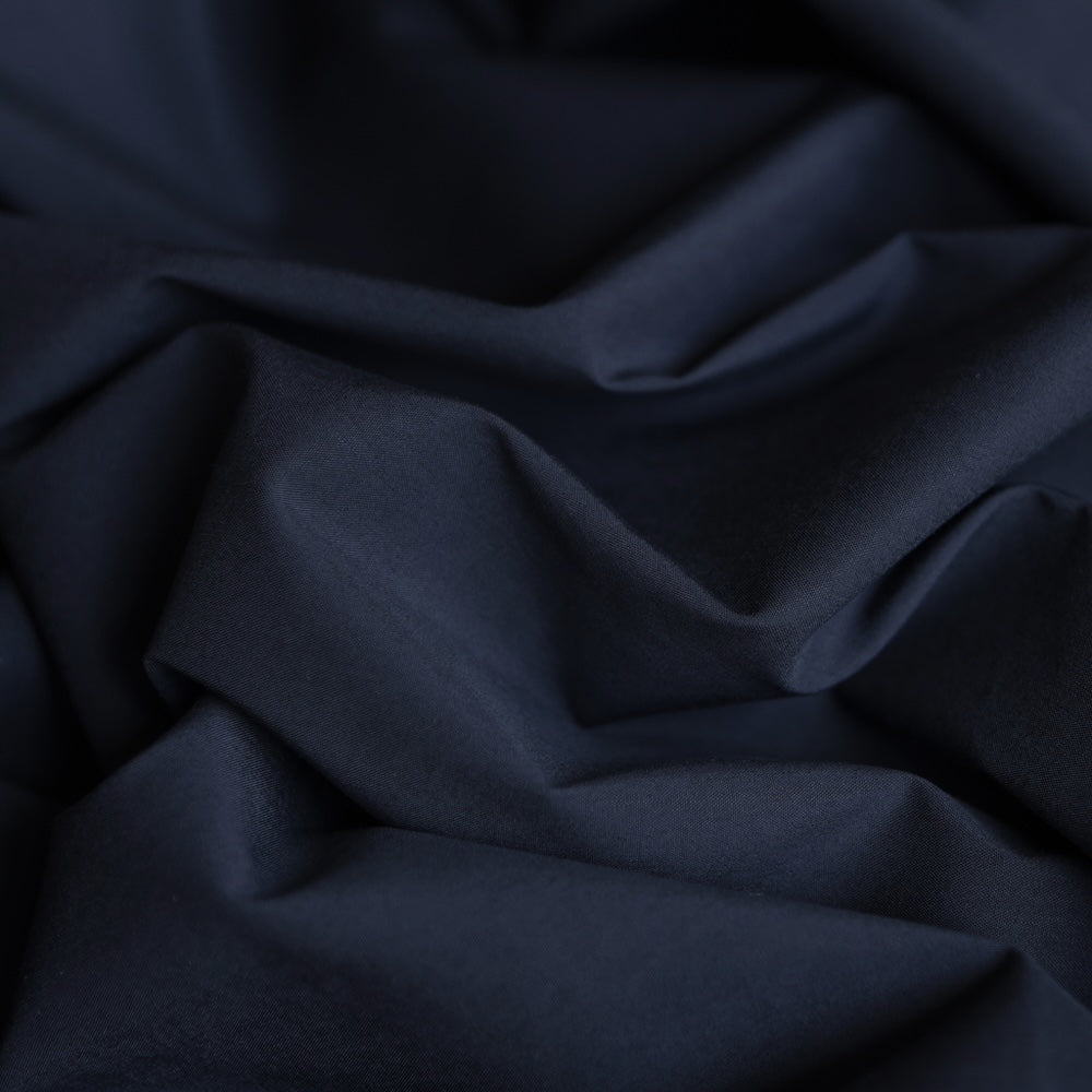 Japanese dark navy typewriter woven high density 70% cotton 30% polyester crisp water repellant poplin with stretch