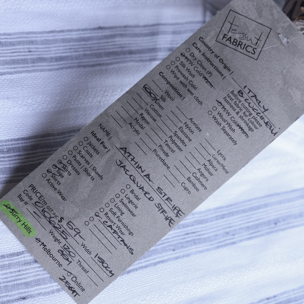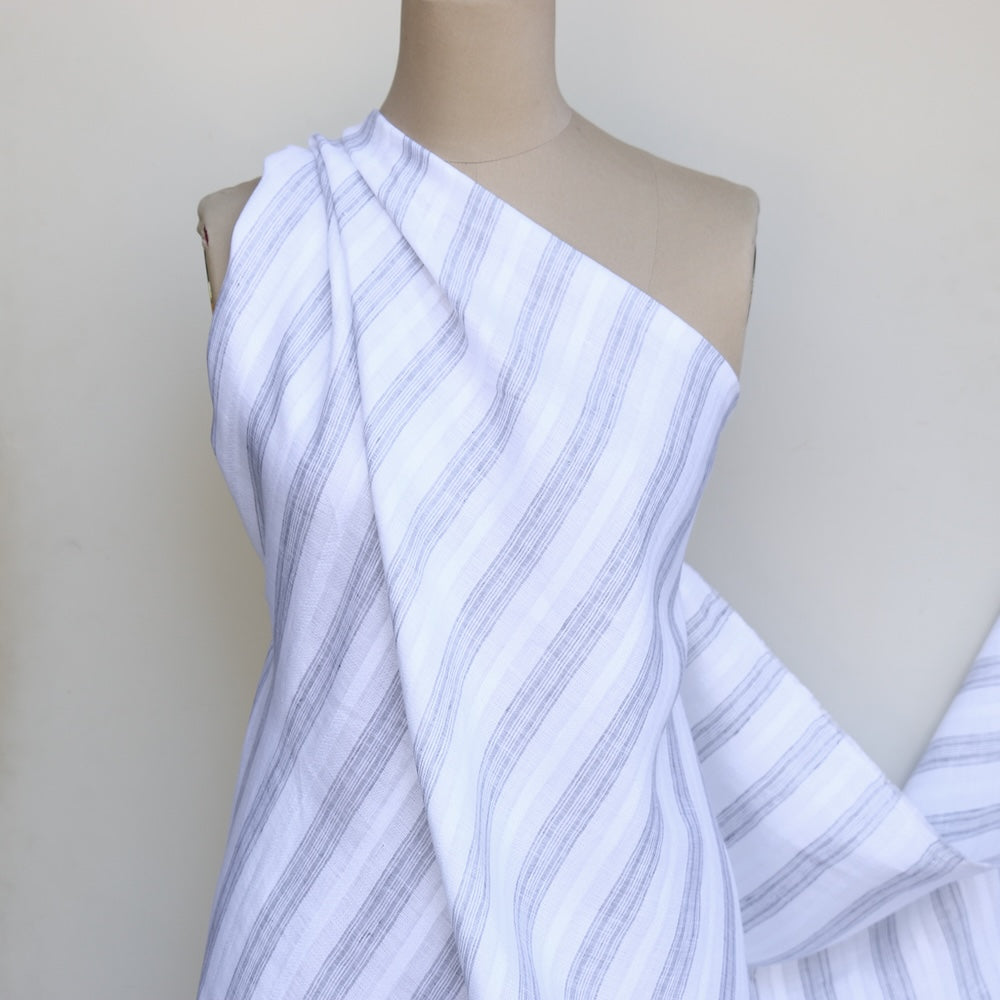 Italian designer white/grey jacquard striped 100% linen