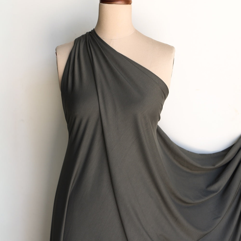 This is soft drapey bamboo jersey is ideal for tops, cardigans, dresses, skirts and loose lounge pants. Also available in assorted colours.