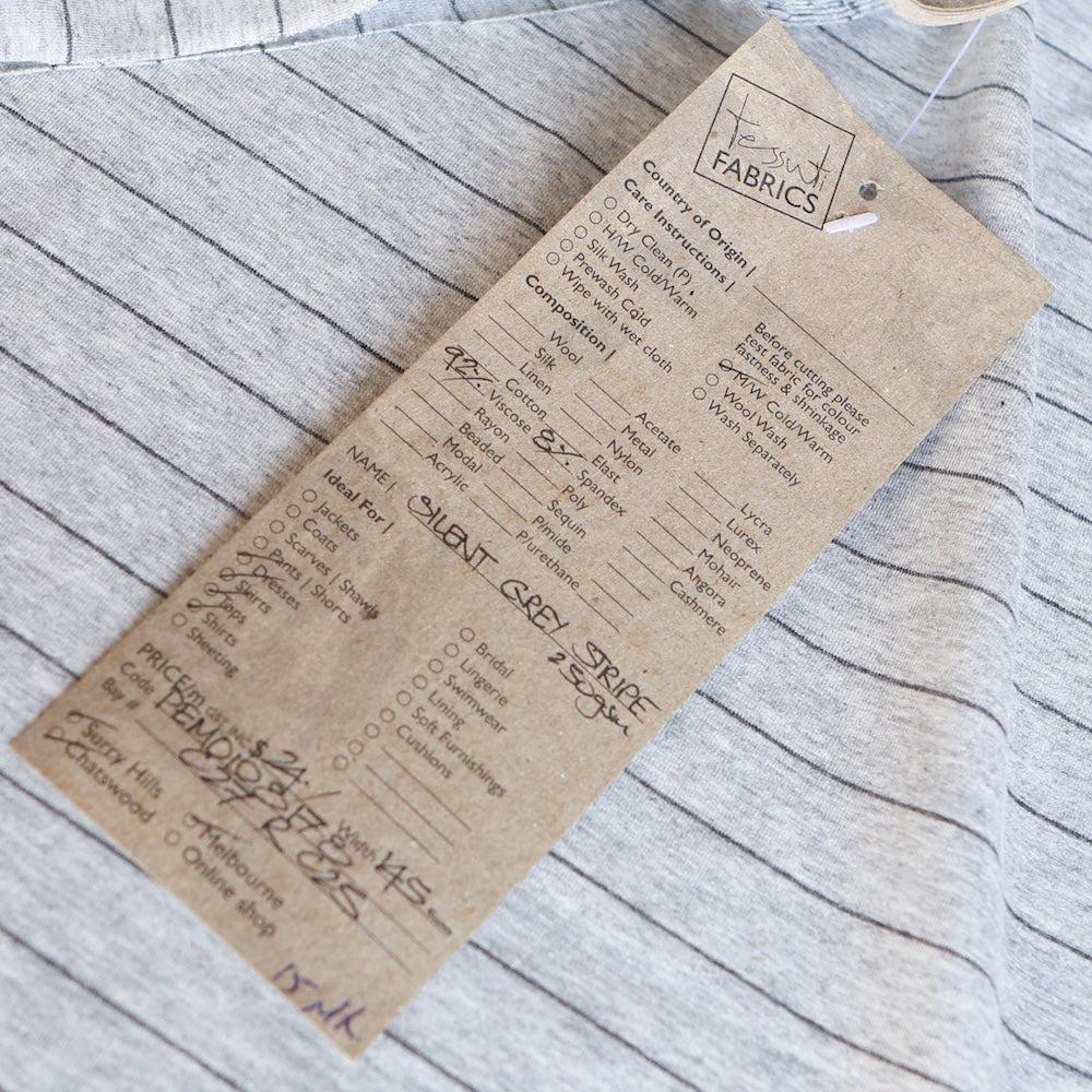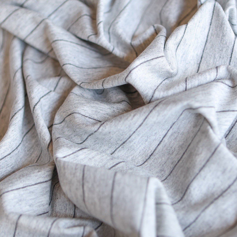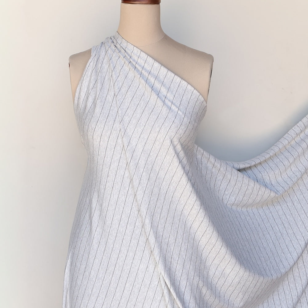 Designer grey marle/charcoal fine striped 98% viscose 2% elastane jersey