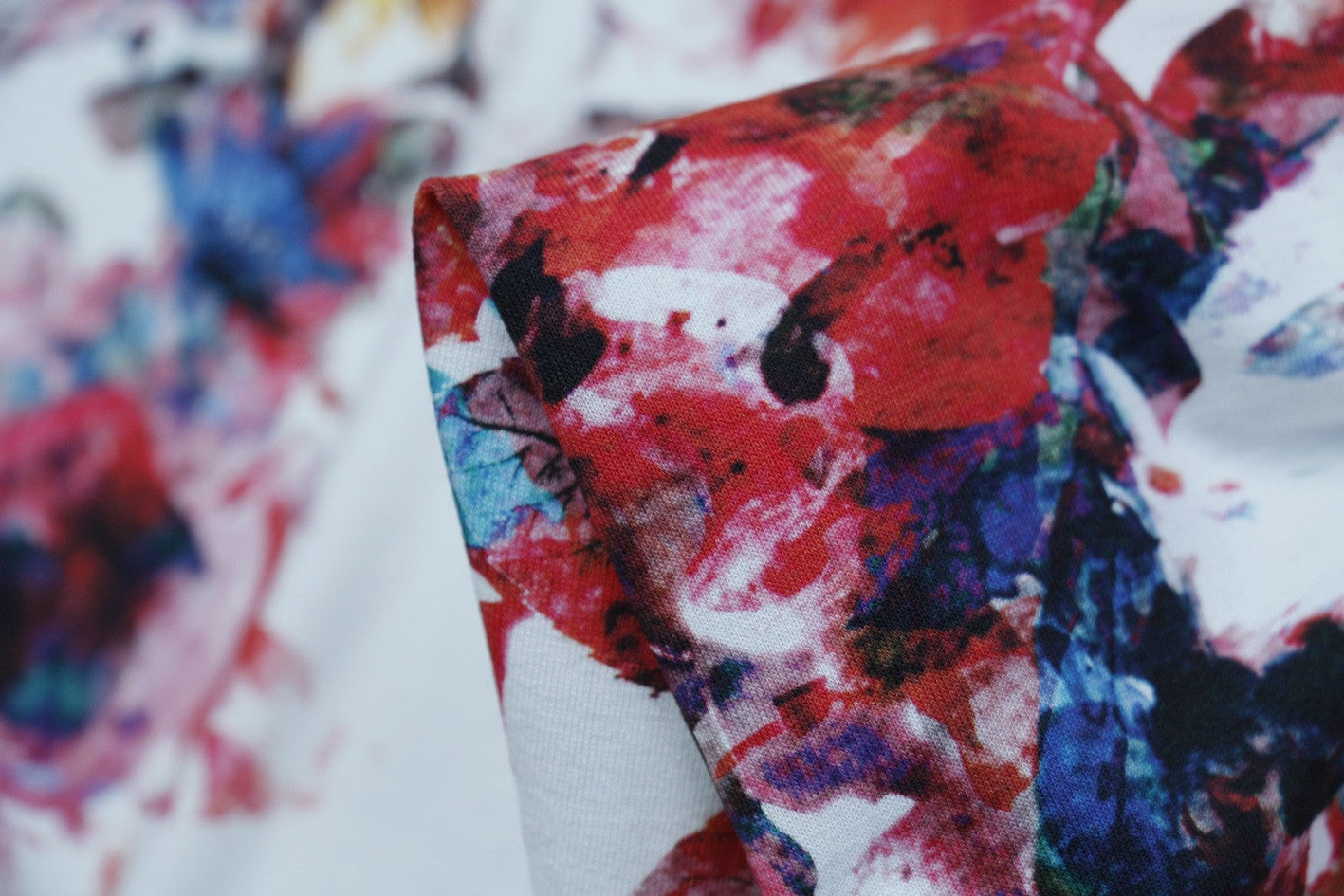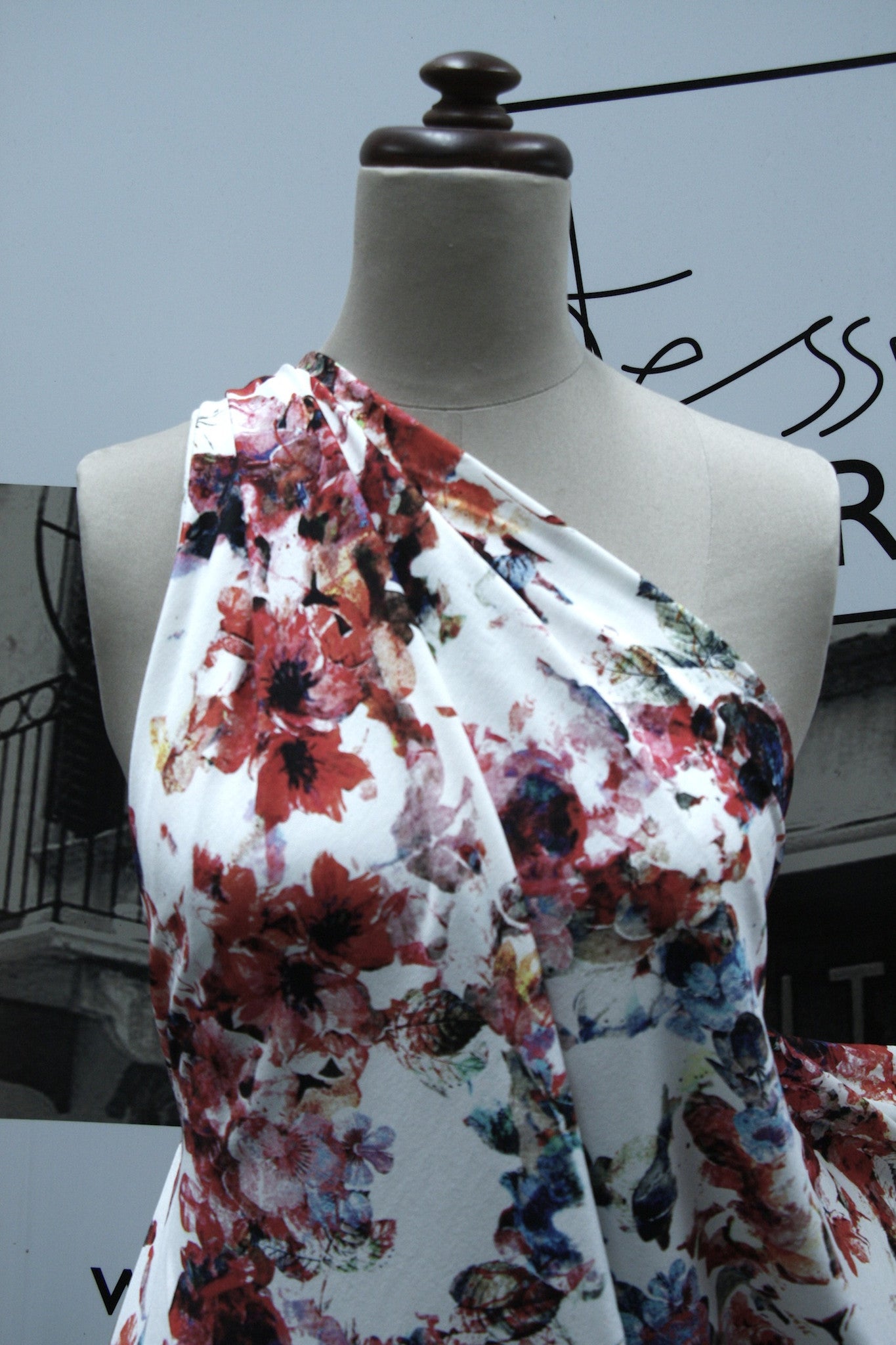 Italian printed 97% Viscose 3% Spandex jersey knit. Width:155m