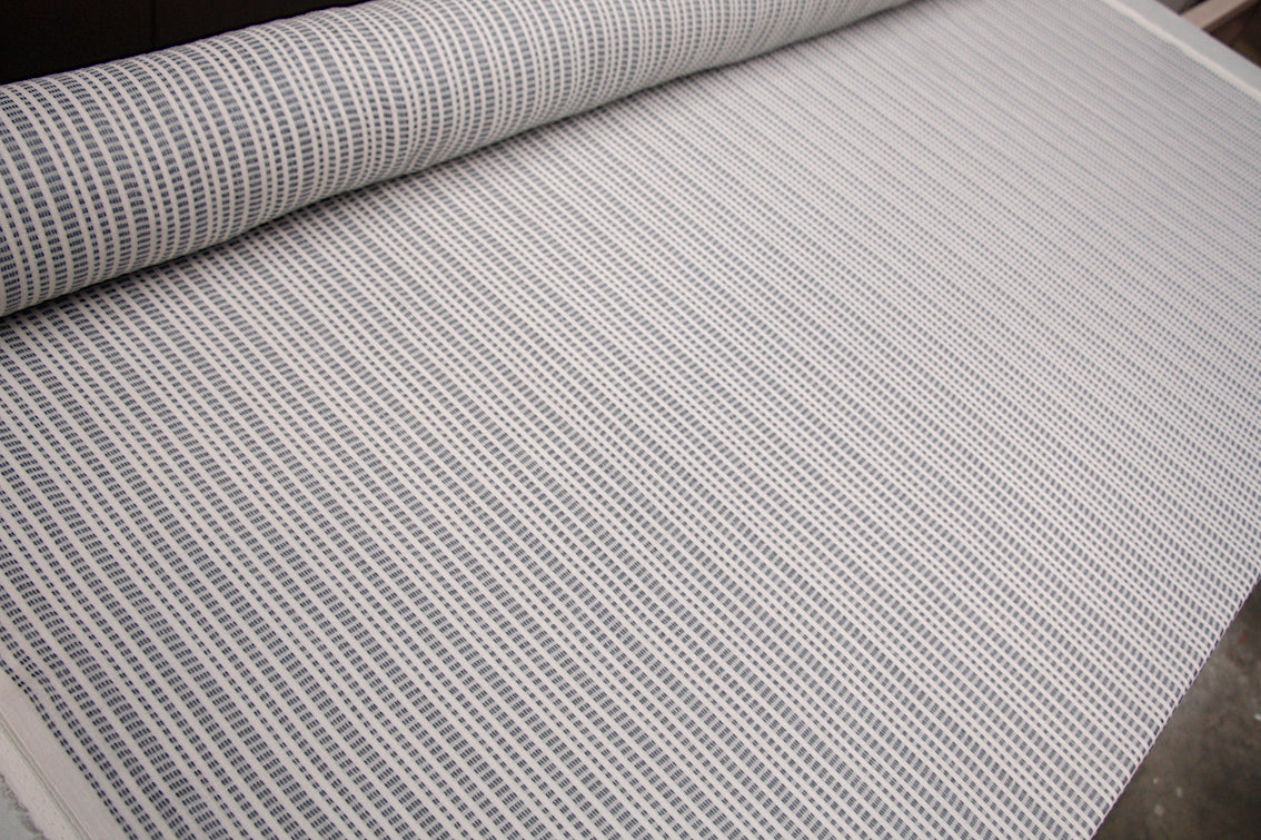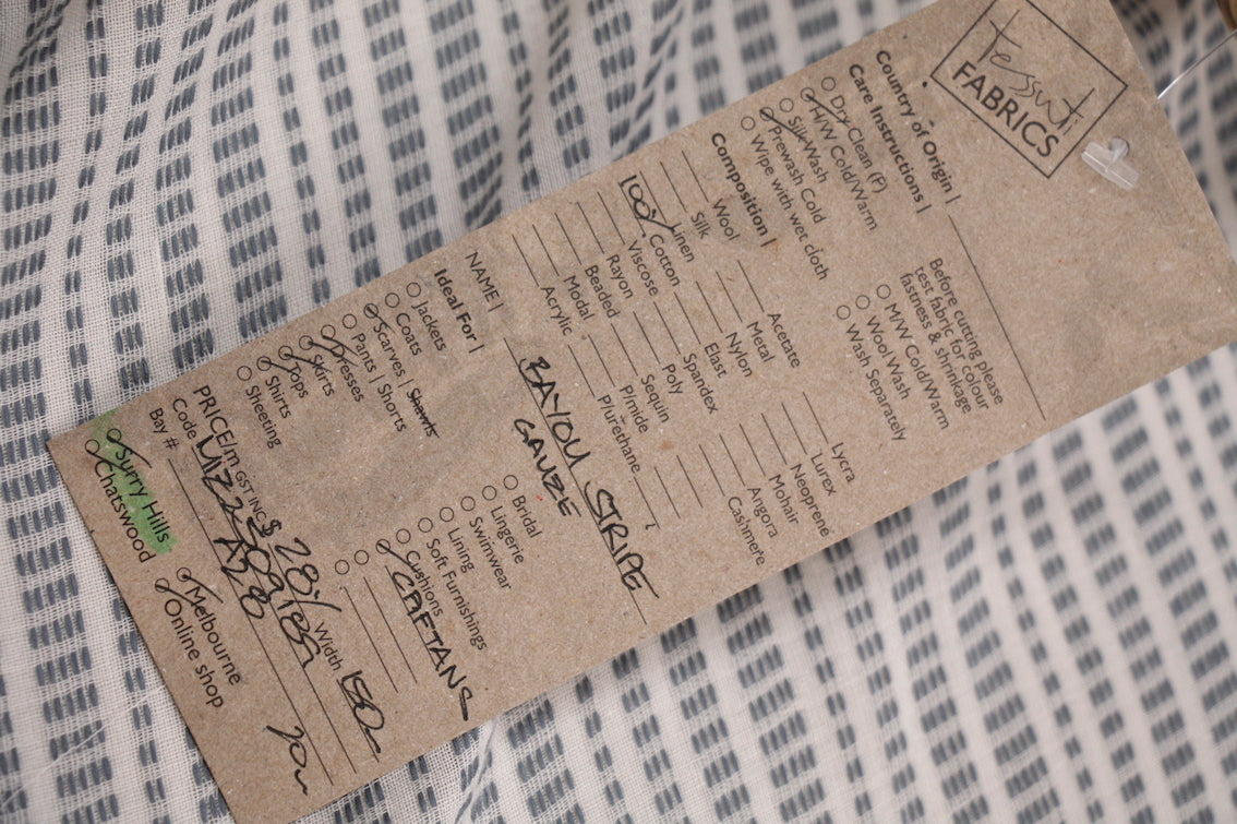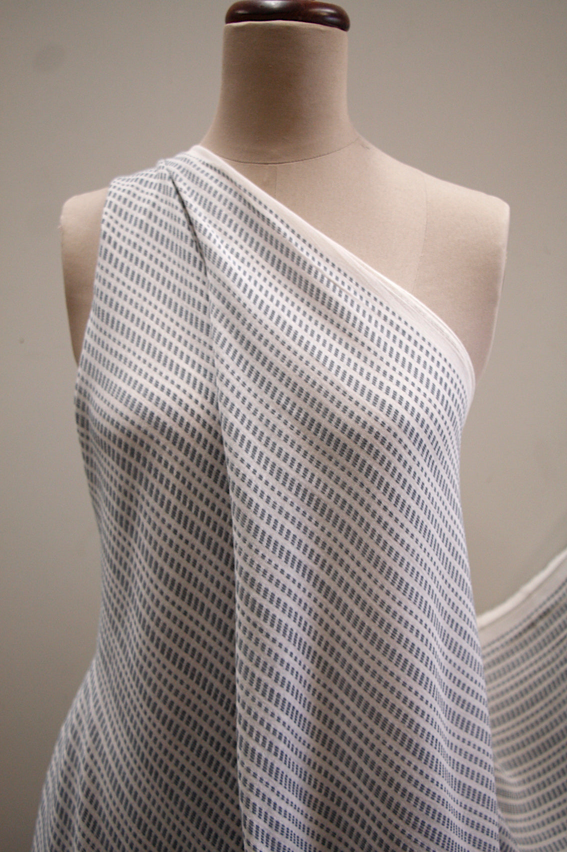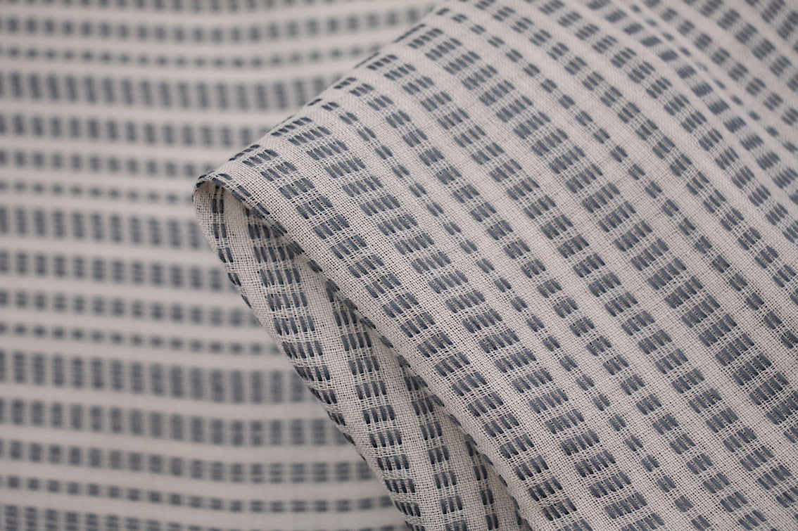 Designer ivory/blue jacquard striped 100% cotton gauze. Width:150cm