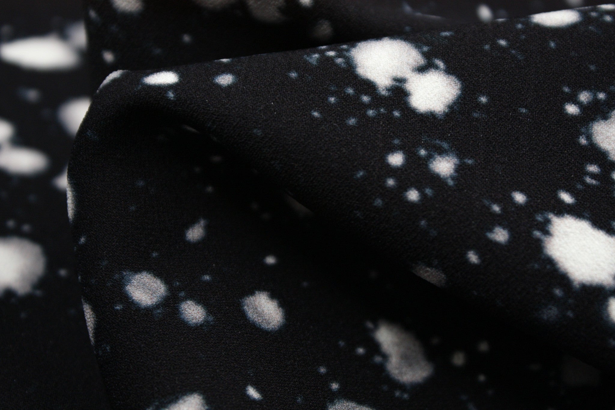 Black/Silver White splotch print is ideal for jackets, dresses, tops, skirts, pants, shorts etc