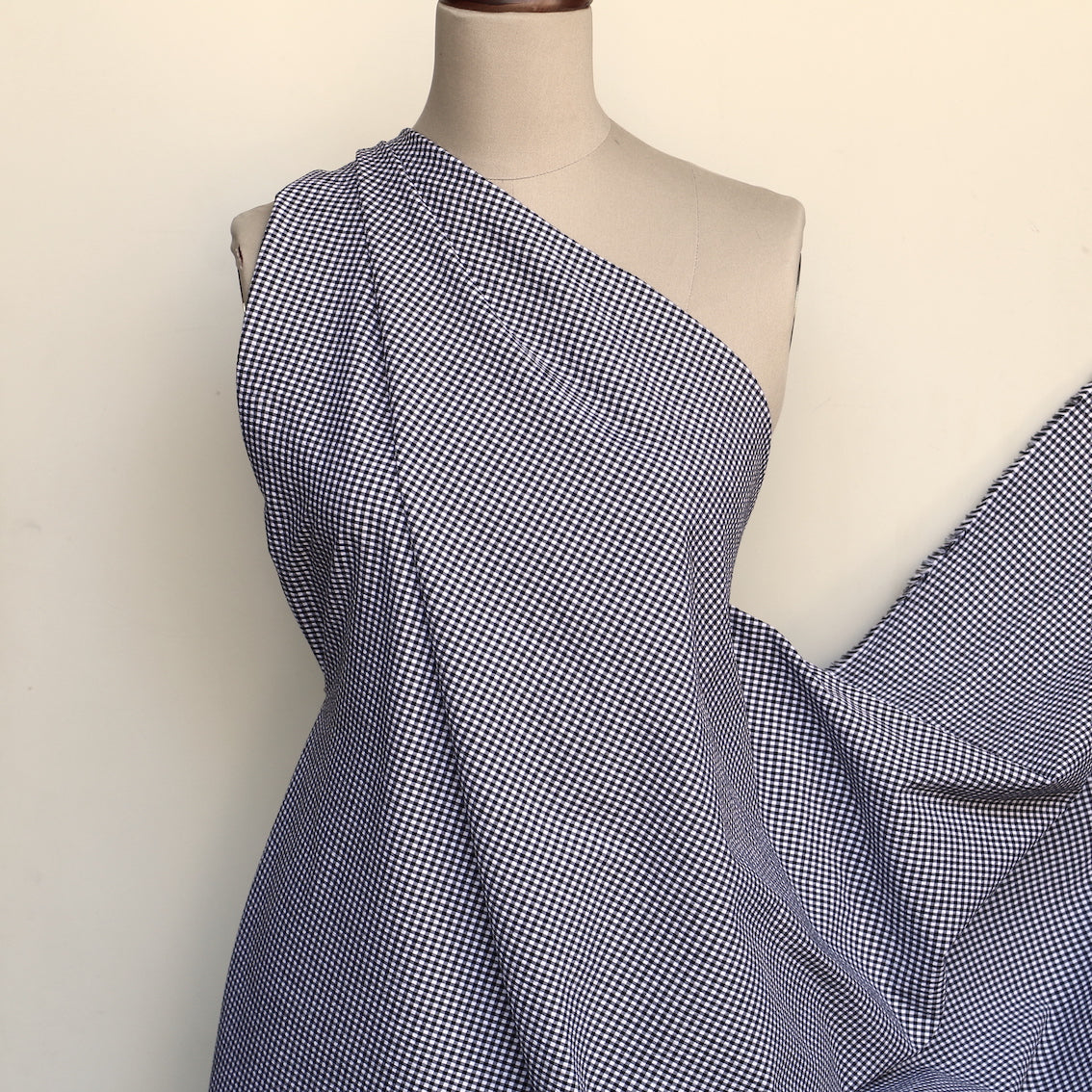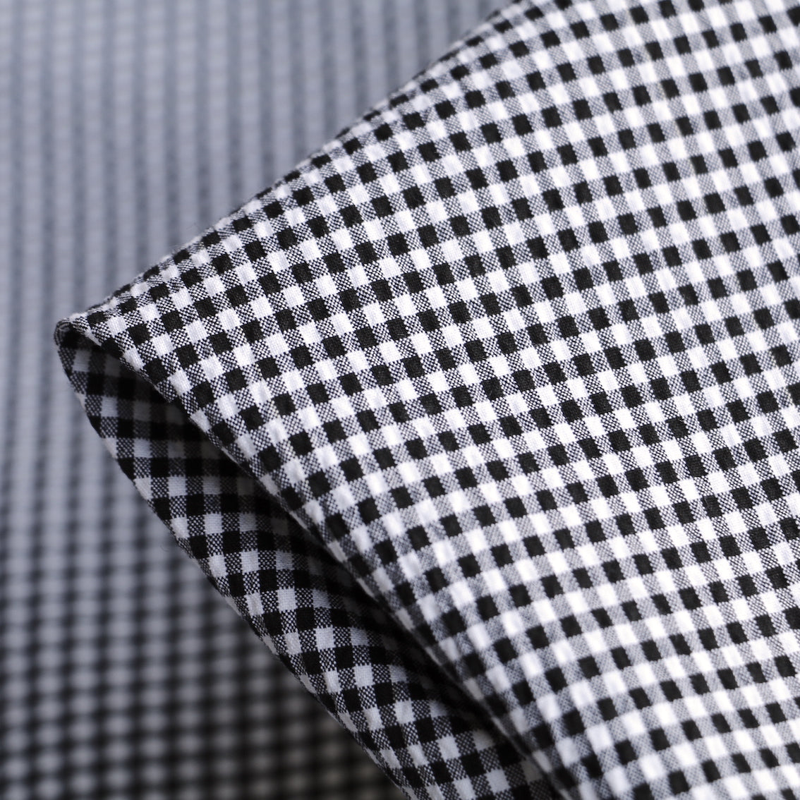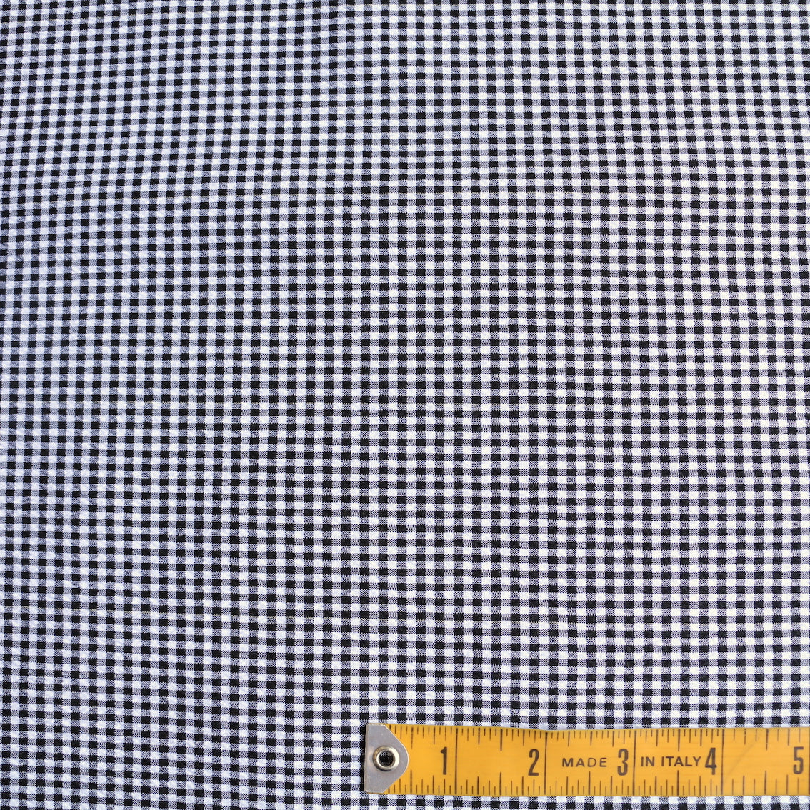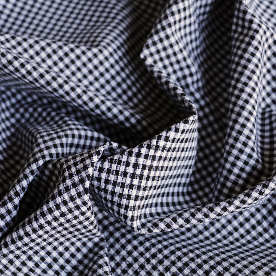 Italian black/white mini gingham checked 98% cotton 2% elastane seersucker