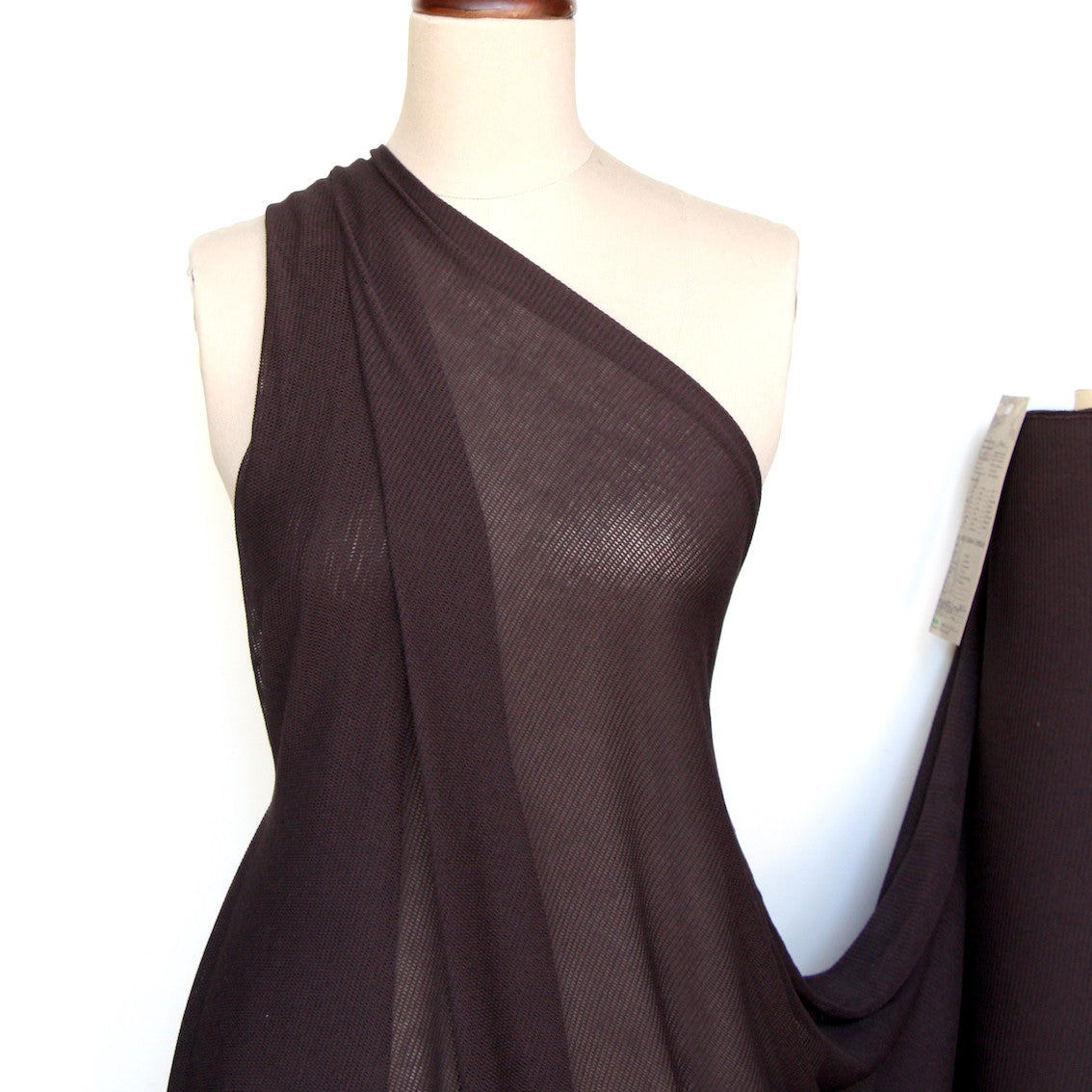 Designer Italian brown 100% cotton mesh knit. Width: 130cm