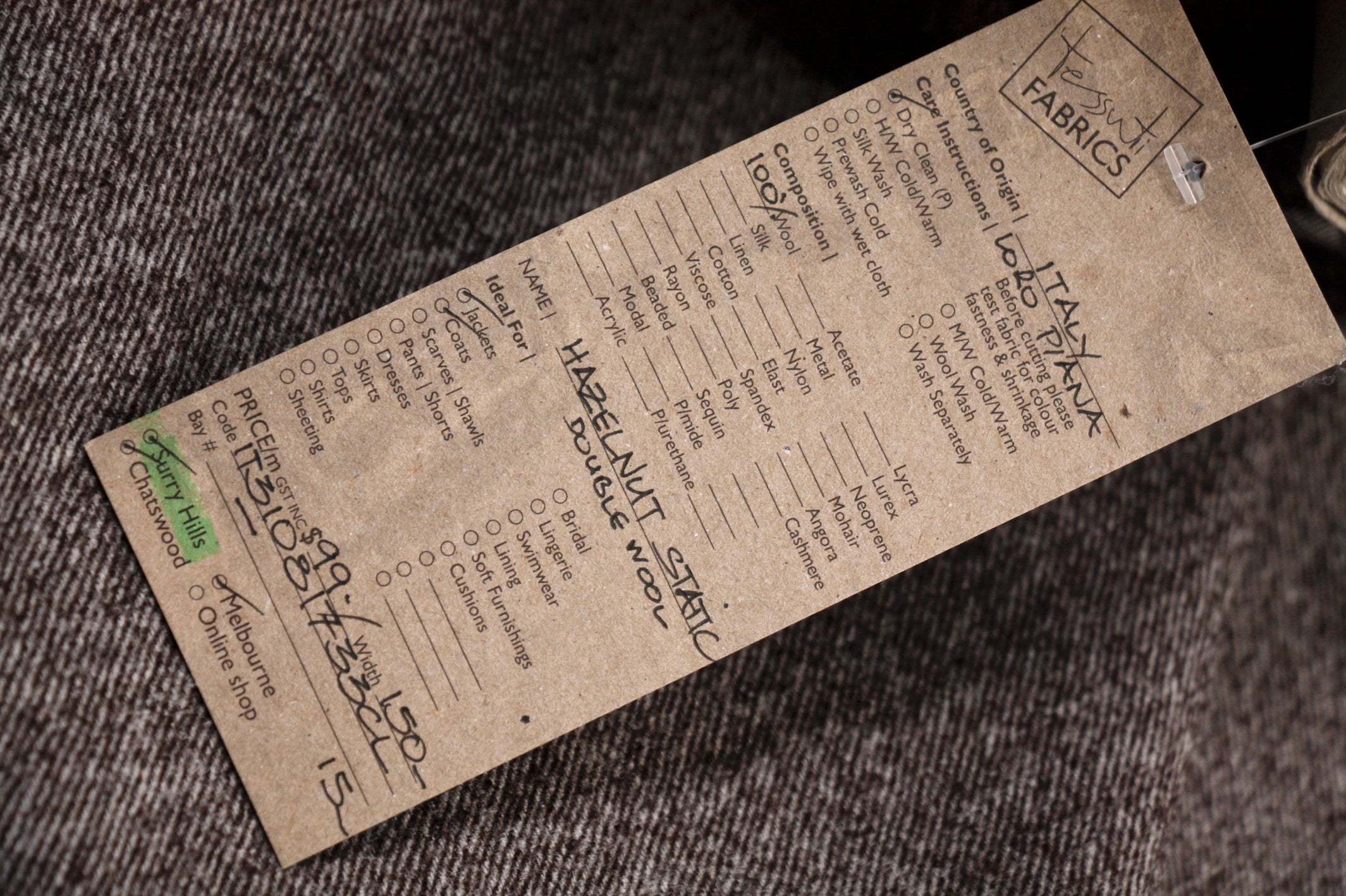 Italian designer double sided hazelnut/chocolate brown 100% wool. Width: 150cm