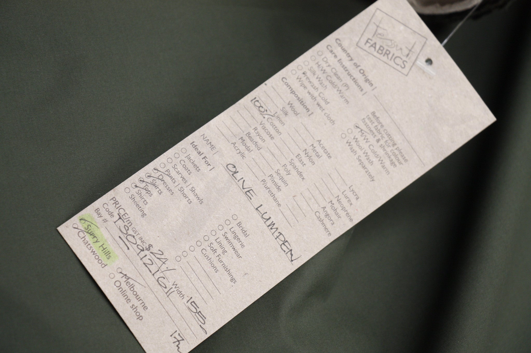 Crisp Olive Green 100% cotton poplin. Width: 155cm wide