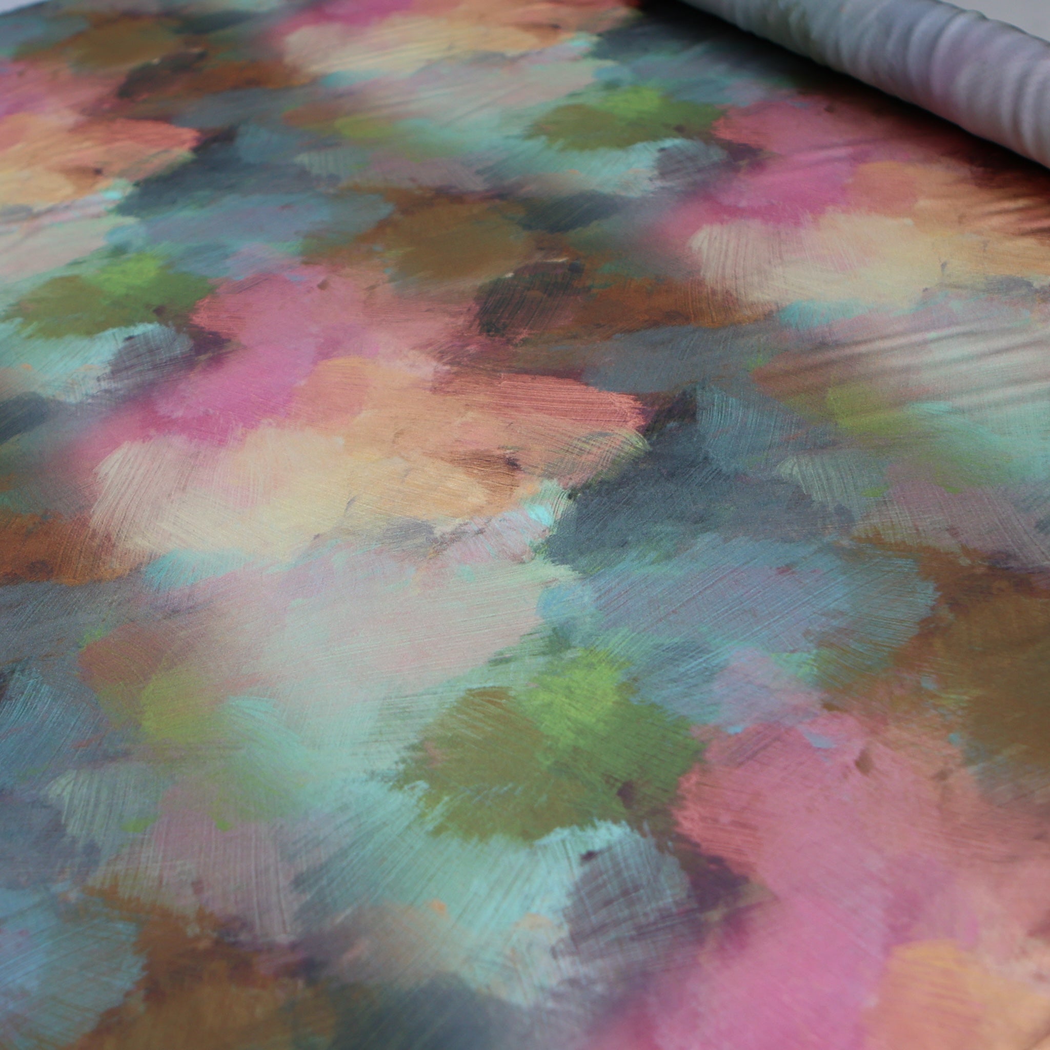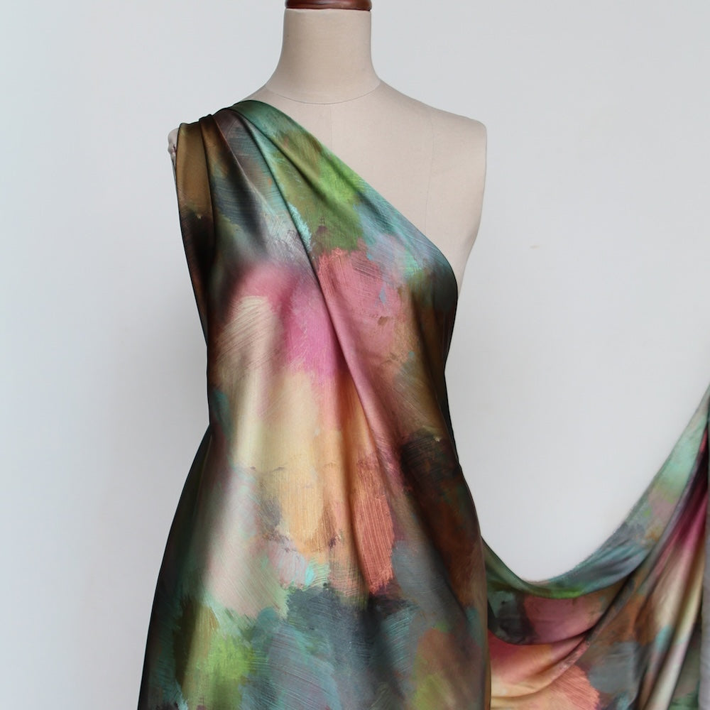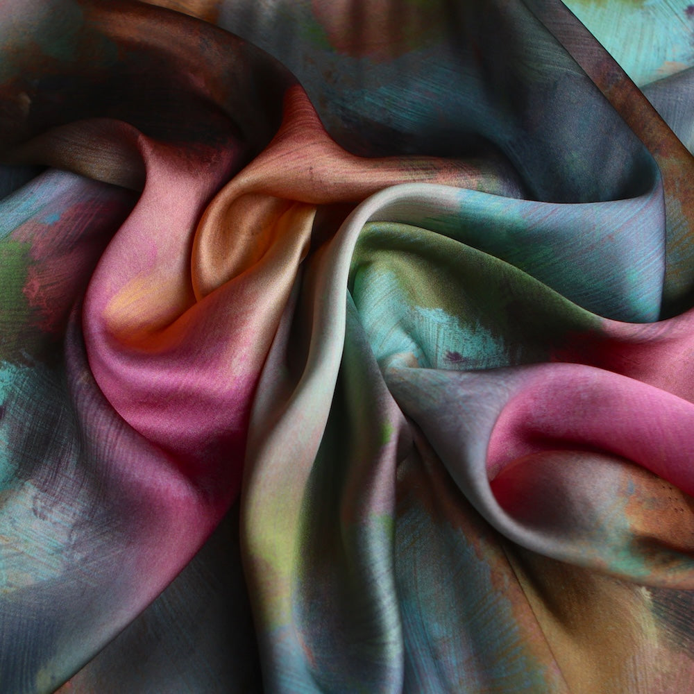Fern/rose/wedgewood/plum/pond/copper strokes digitally printed 100% silk satin