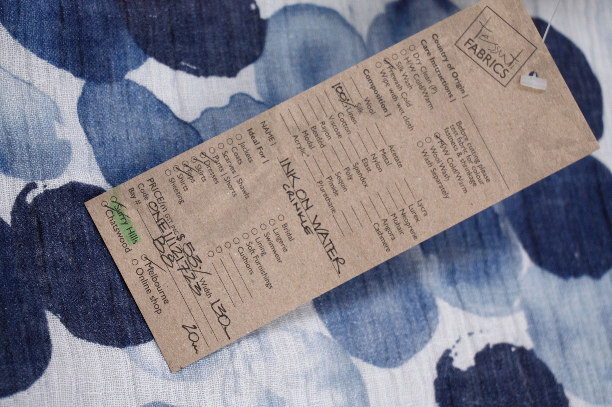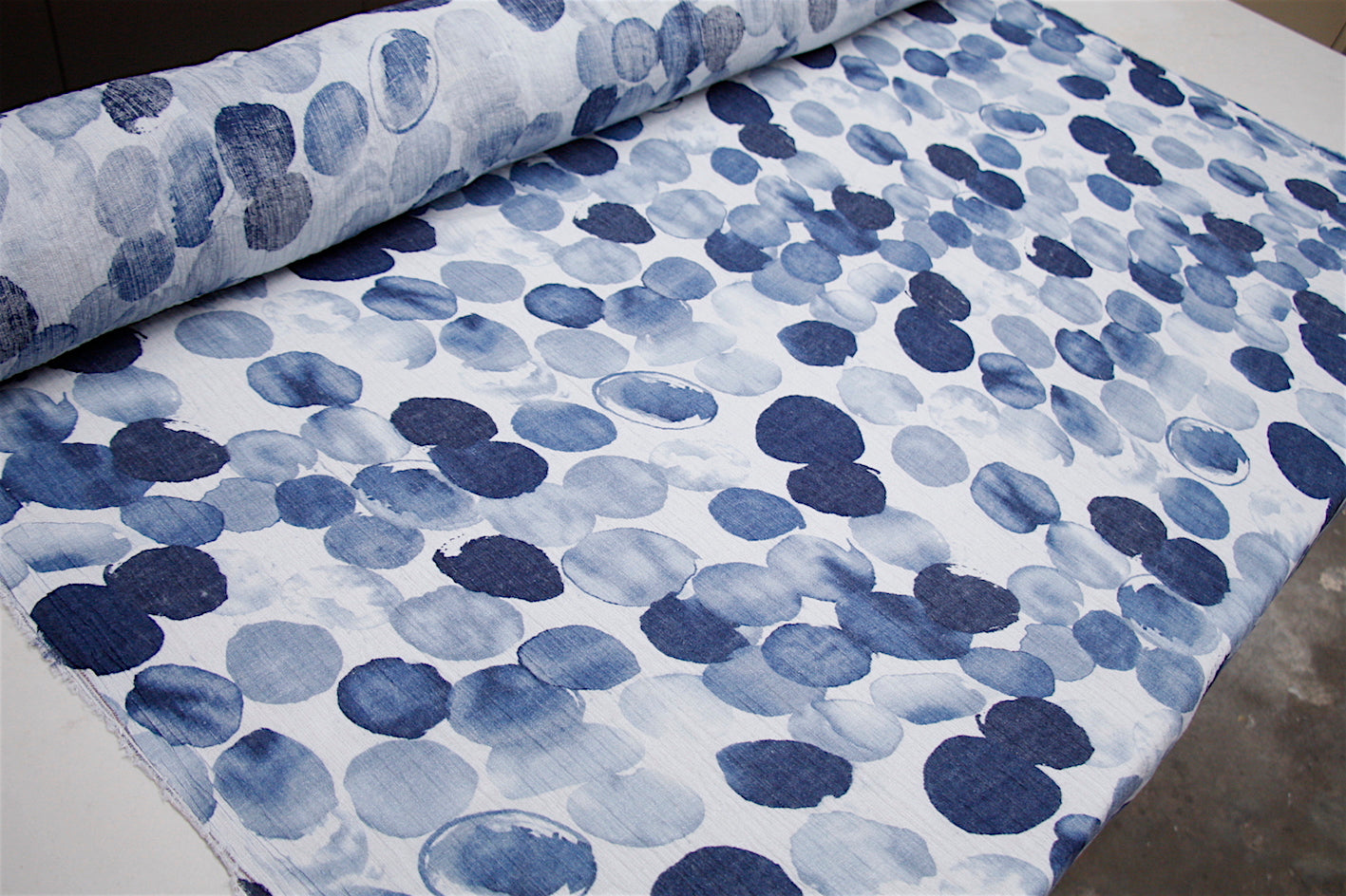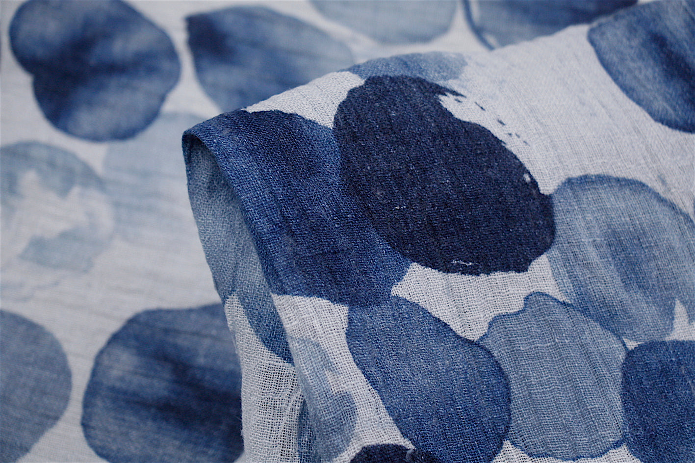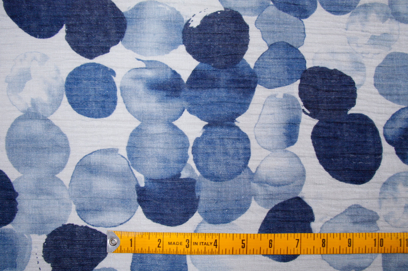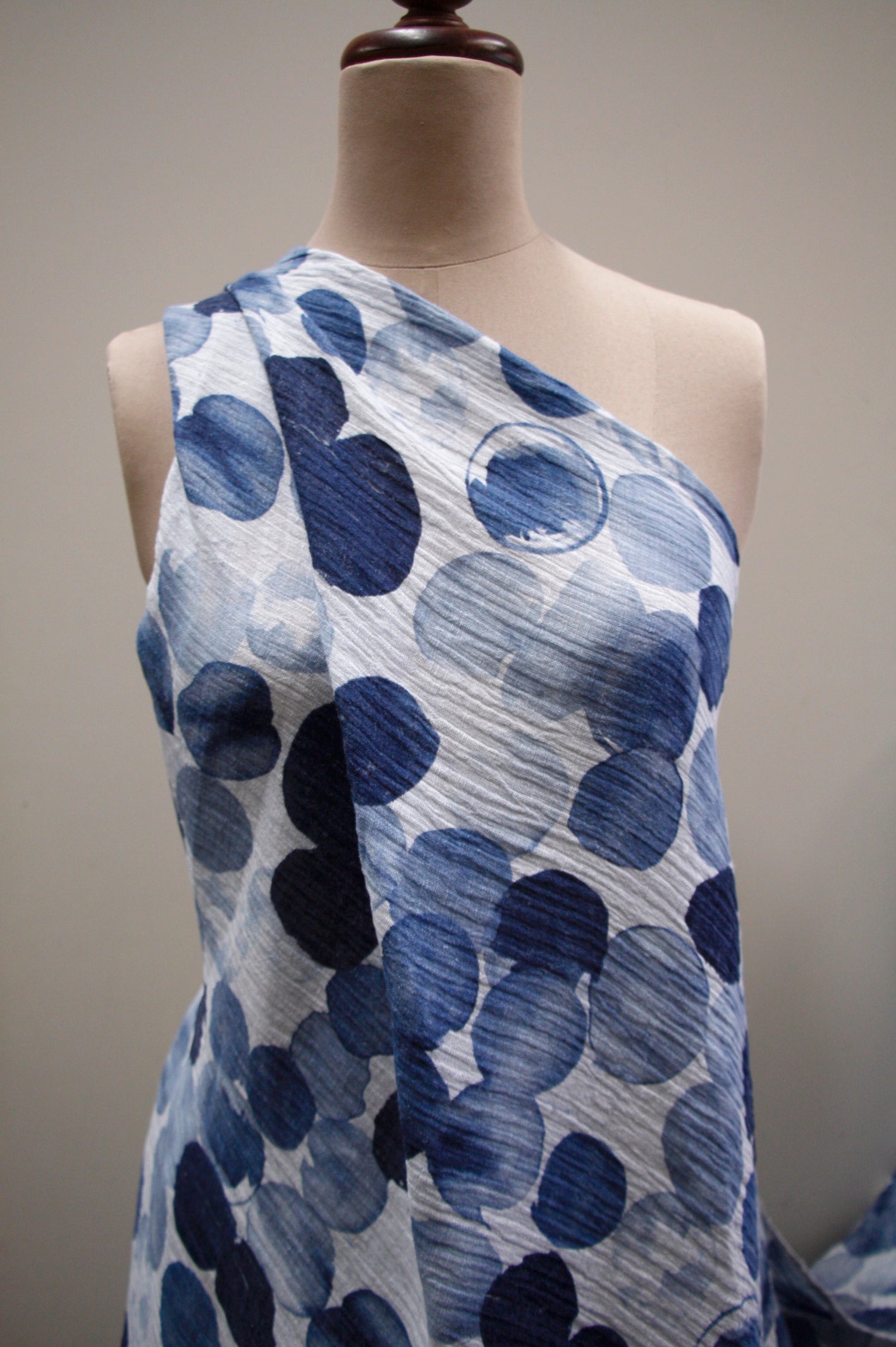 Blue/indigo printed crinkle 100% Linen. Width:130cm