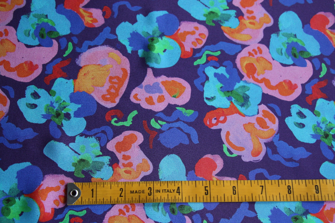 Liberty Fabrics purple/multi printed 100% silk crepe de chine. Width: 140cm