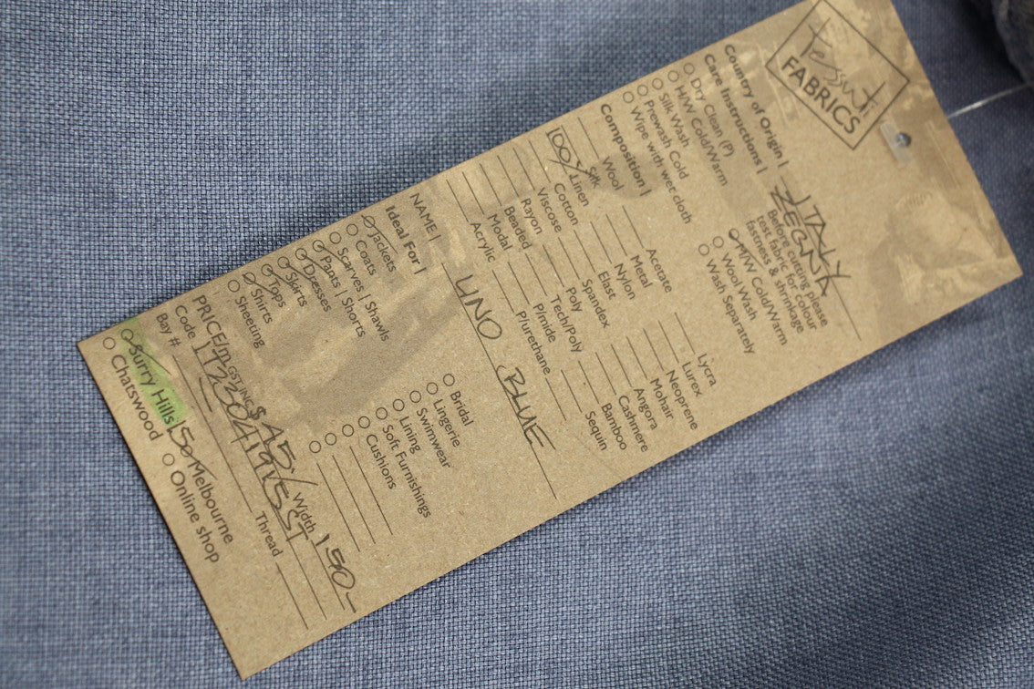 Italian steel blue 100% linen. Width: 155cm