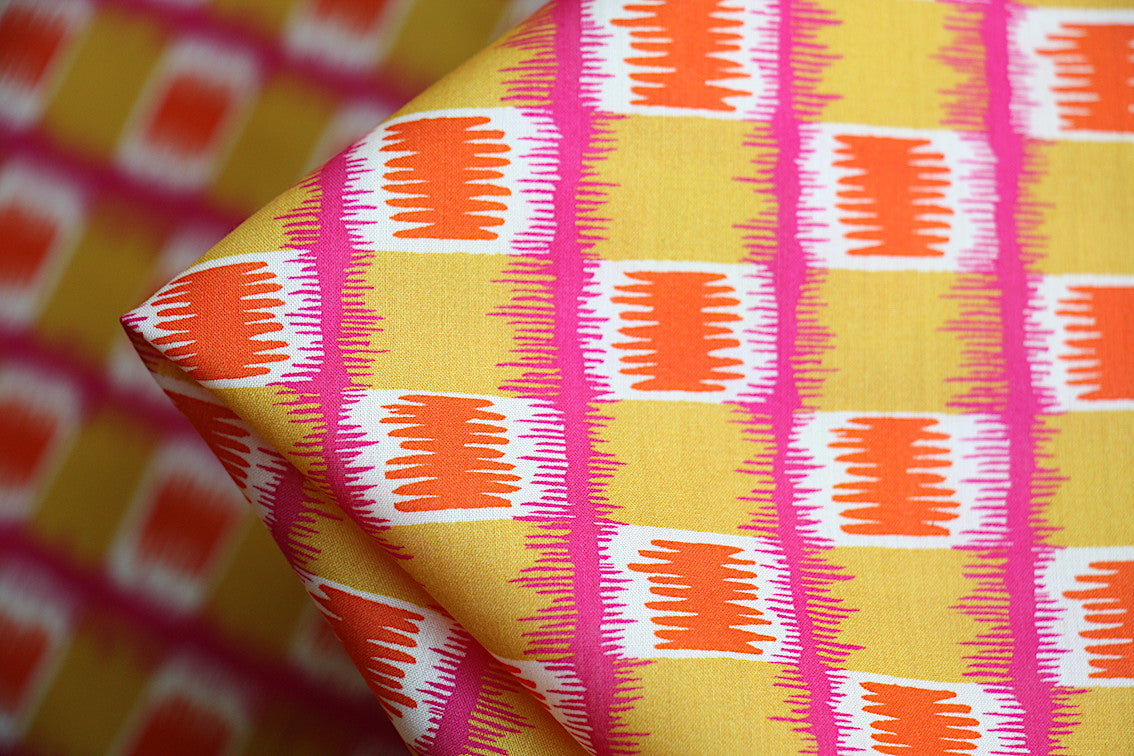 Mirage Stripe was discovered deep within the Liberty archive, having never been used before. Its abstract design resembles the visual trickery of a shimmering desert mirage, with an exaggerated graphic texture inspired by ikat textiles.