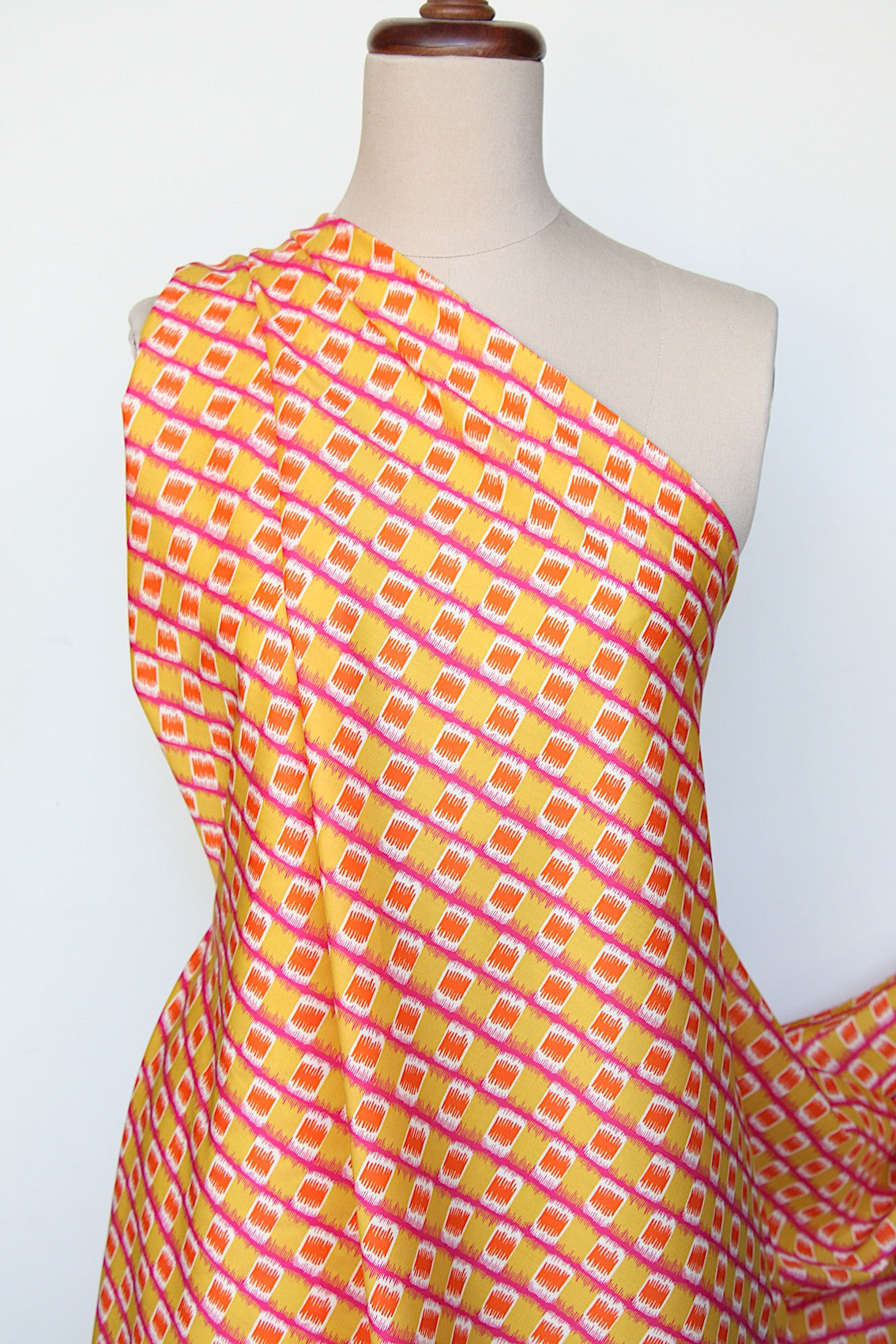Liberty London seasonal 2020 orange/mustard/pink printed 100% cotton tana lawn. Width: 135cm