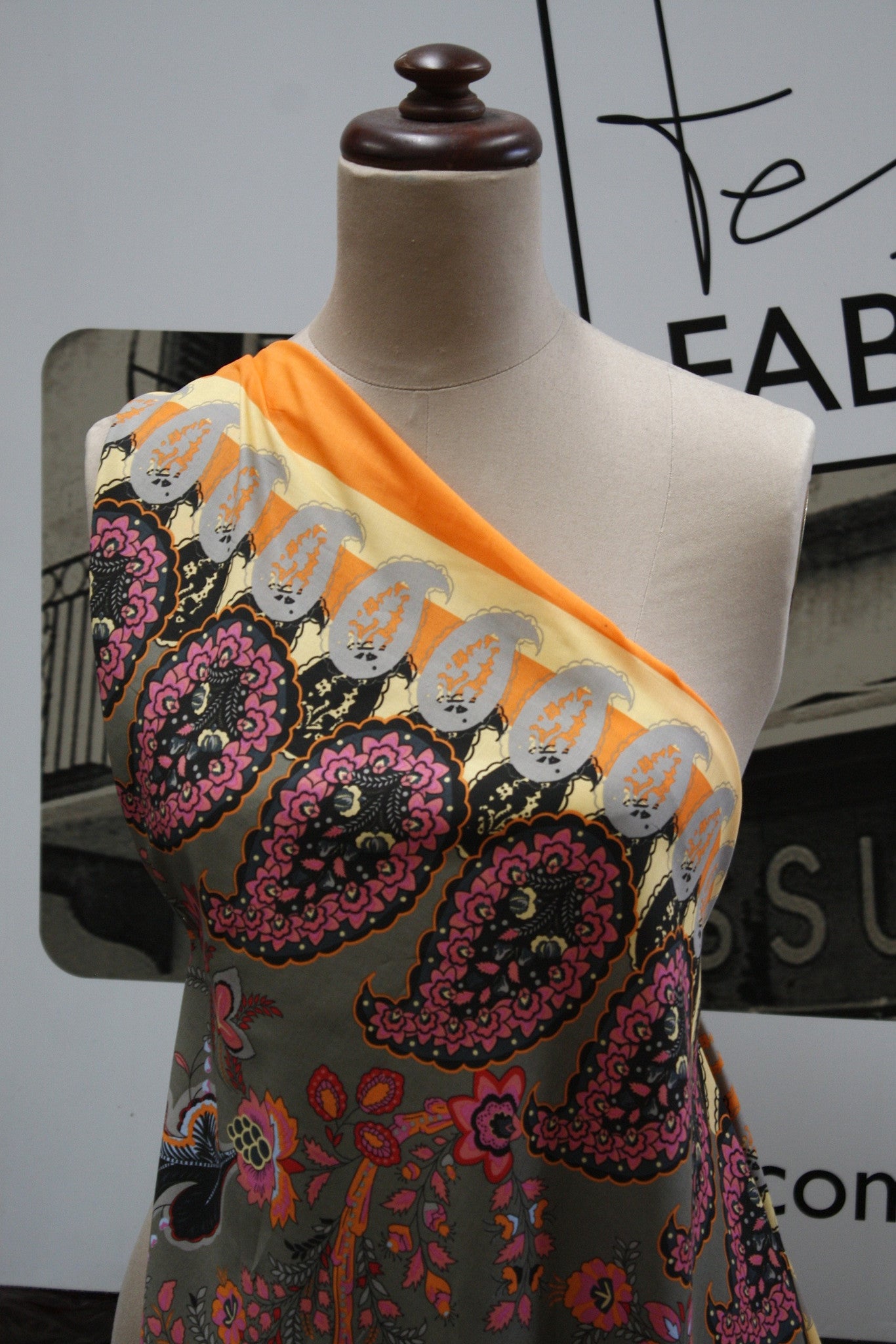 Designer 100% cotton poplin with border pattern on one selvedge edge. Width:135cm
