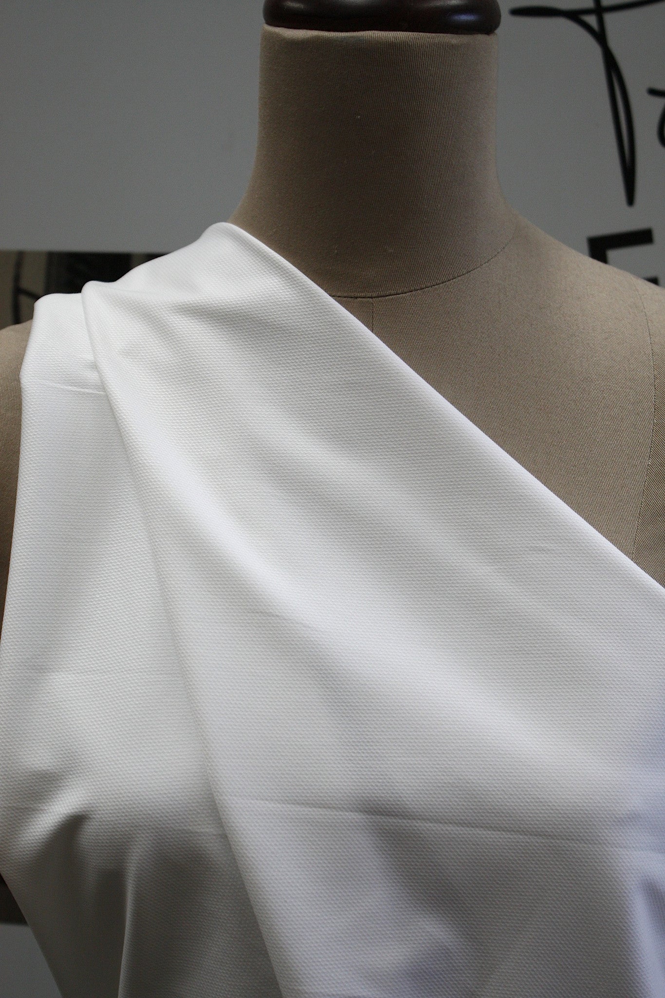 White Textured 97% Cotton 3% Spandex stretch woven. Width:145cm