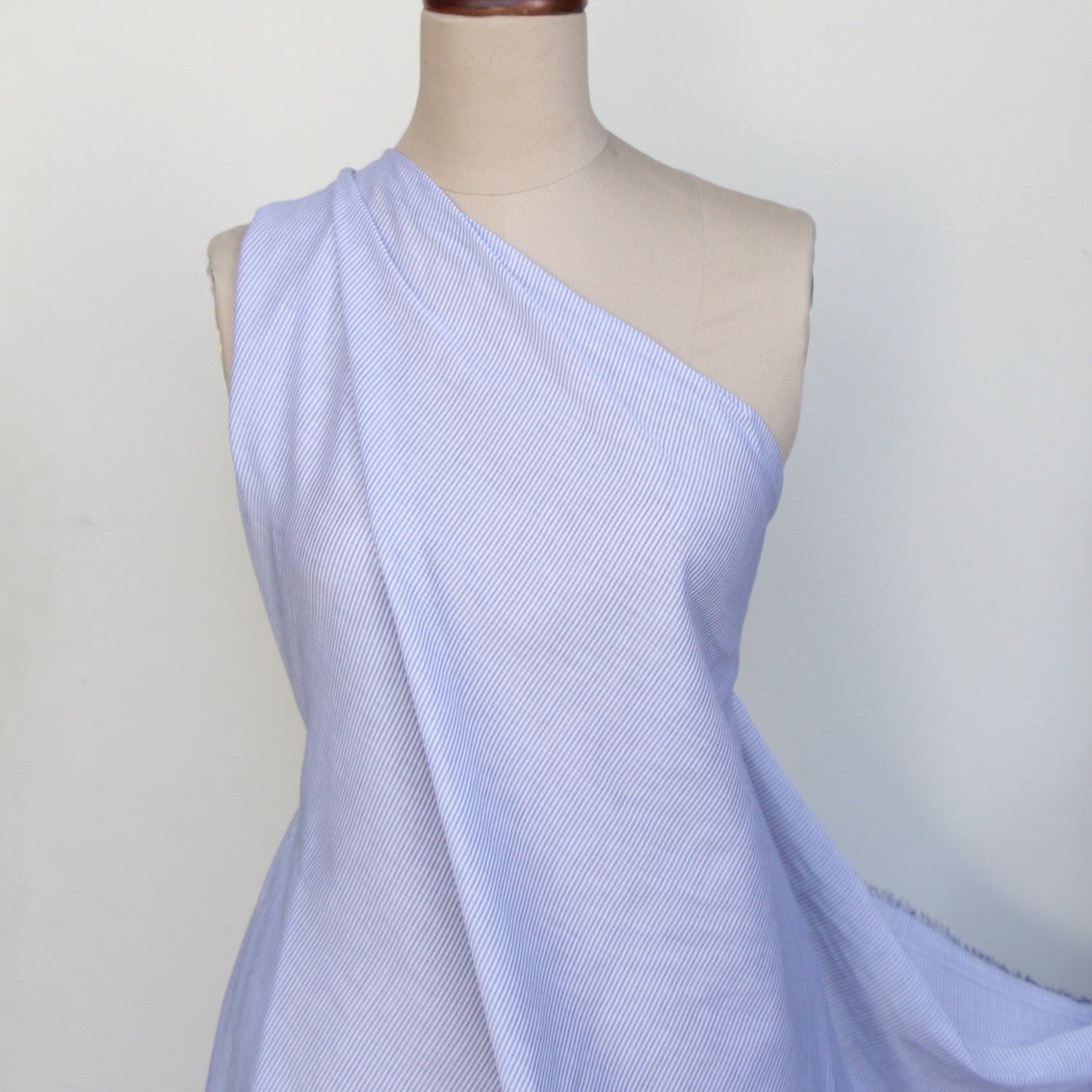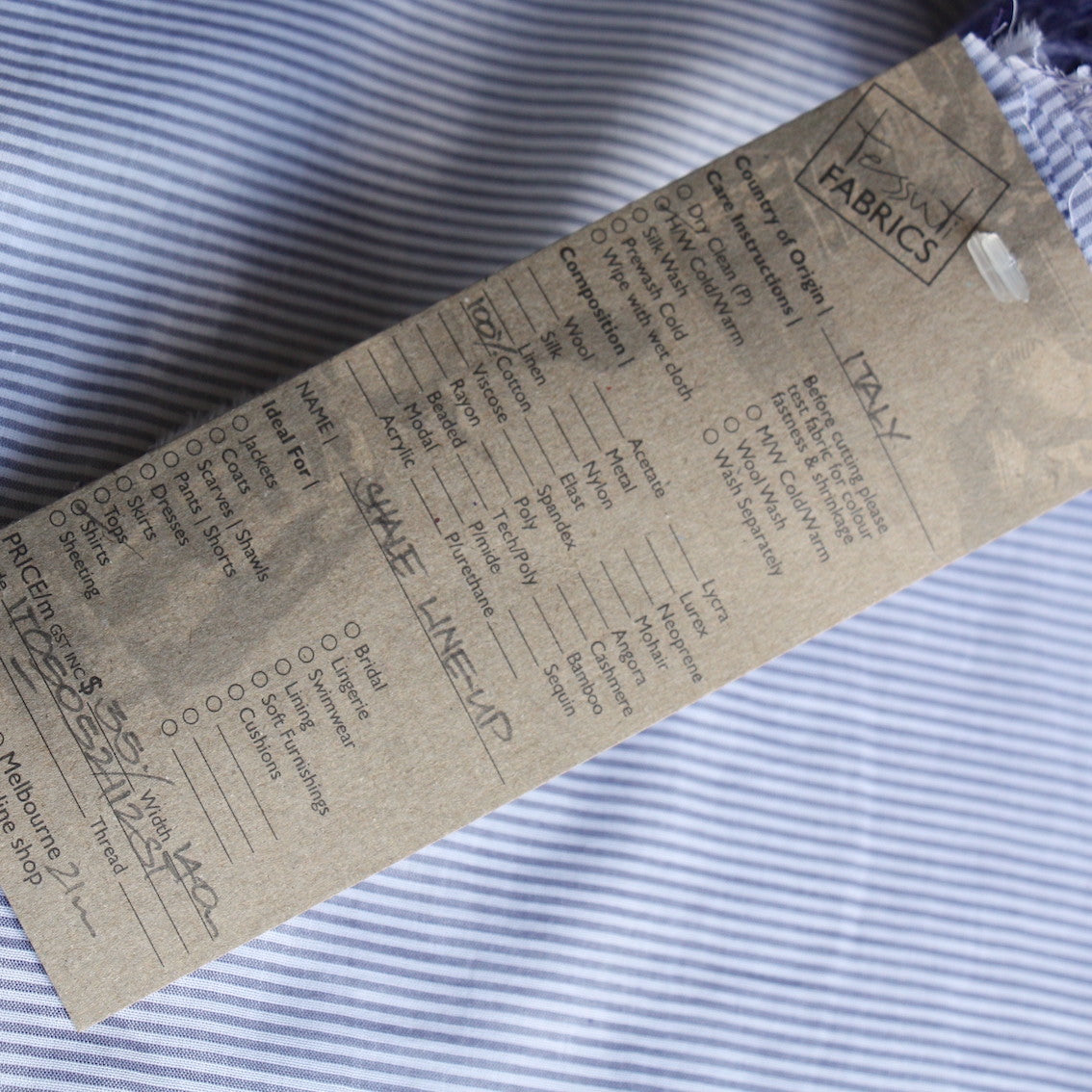 Italian yarn-dyed navy/white mini striped 100% cotton voile