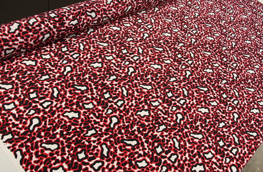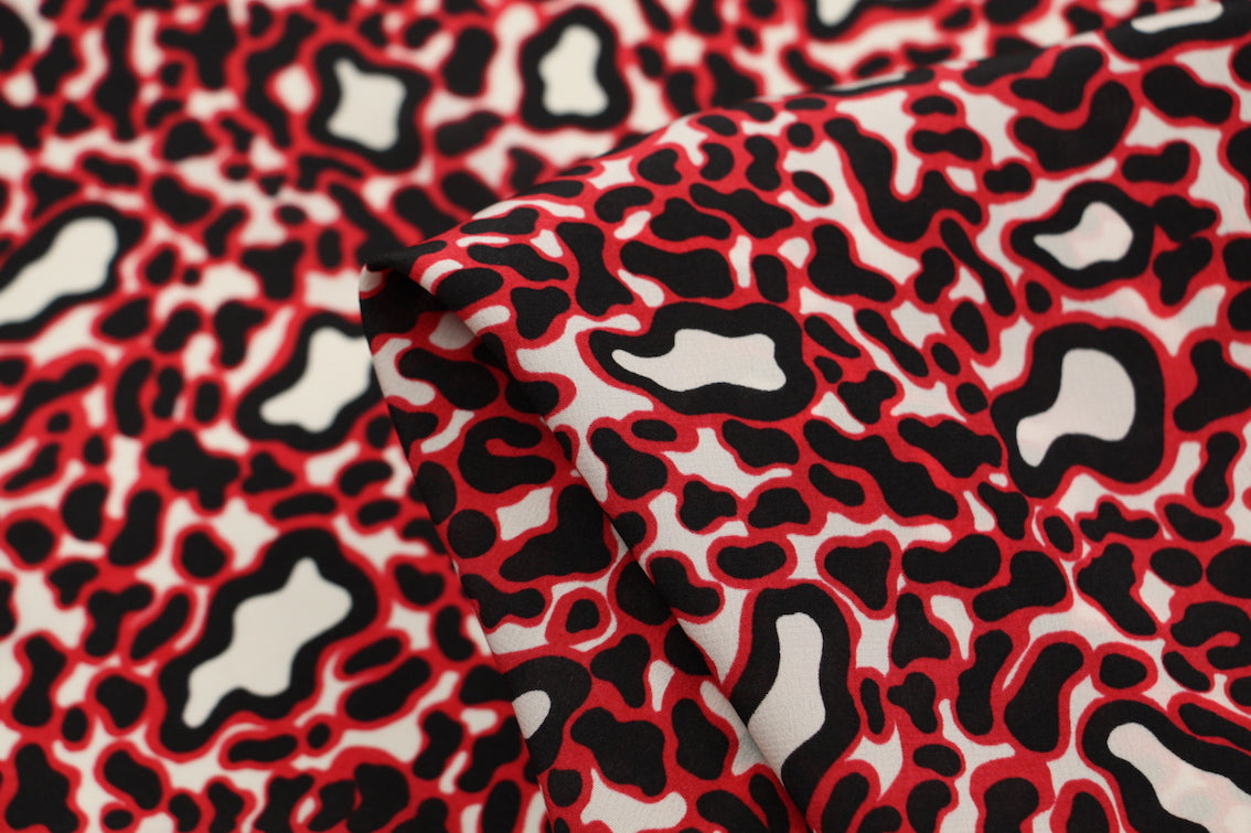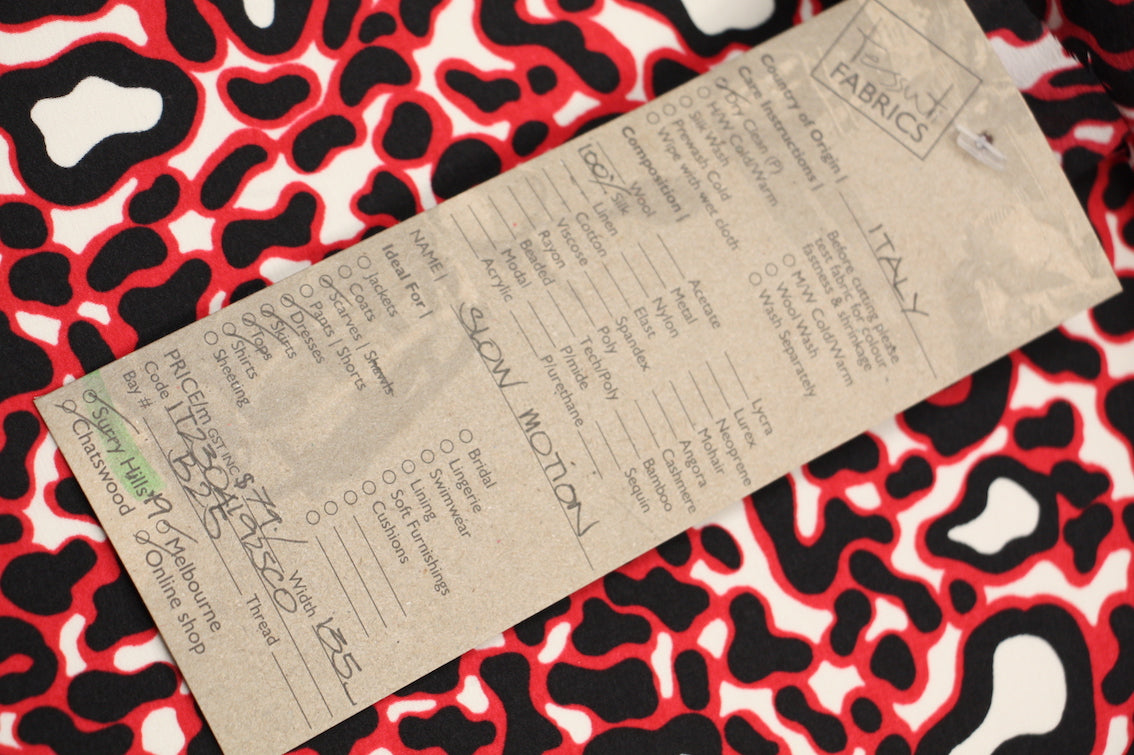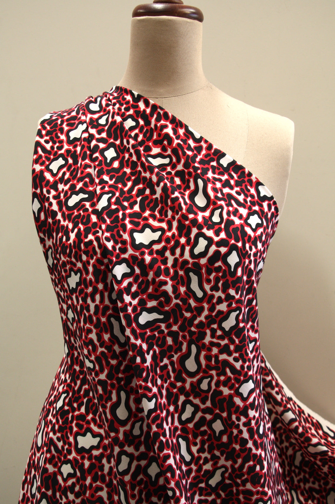 Italian designer raspberry/black printed 100% silk crepe de chine.