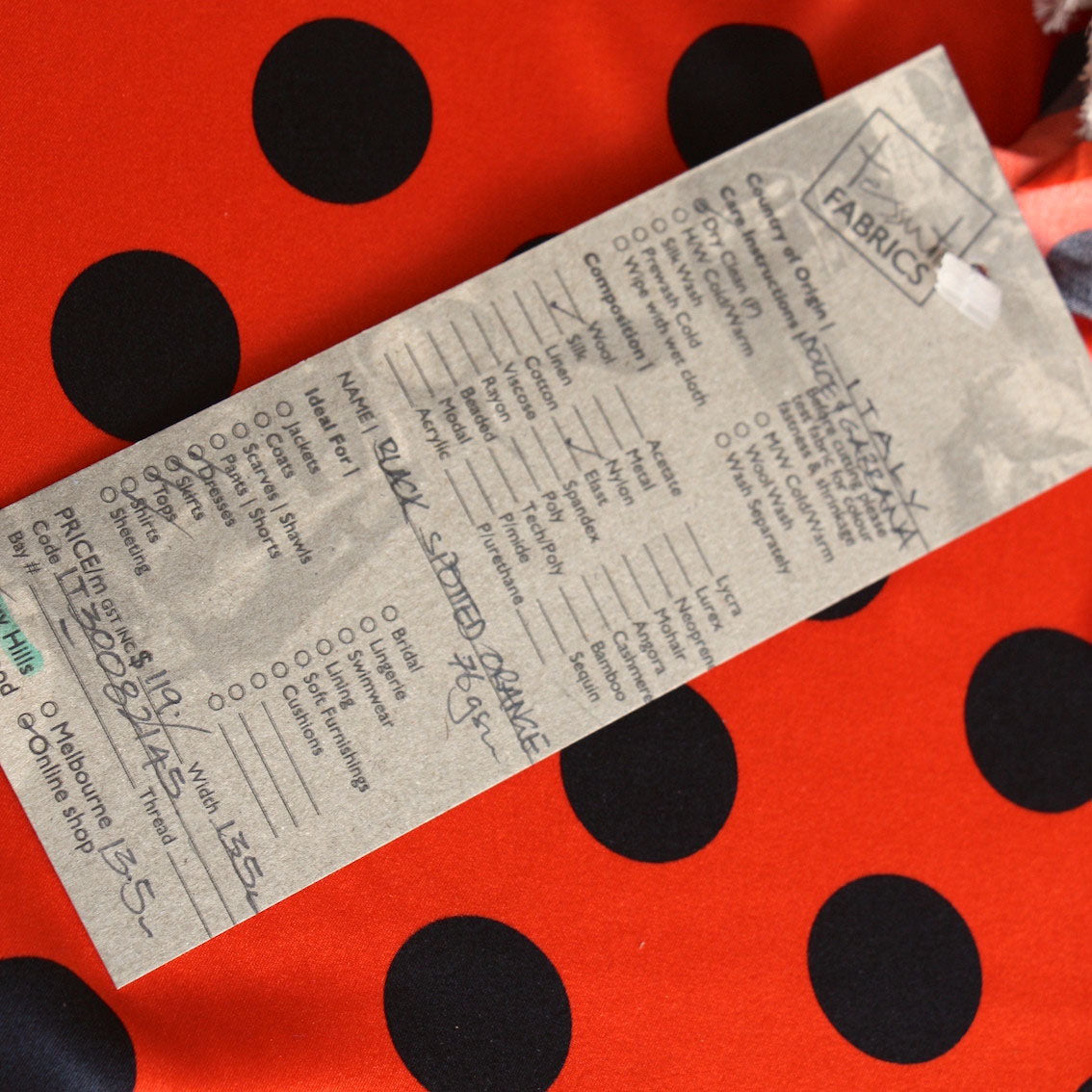 Italian designer Dolce and Gabbana orange/black spot 100% silk satin