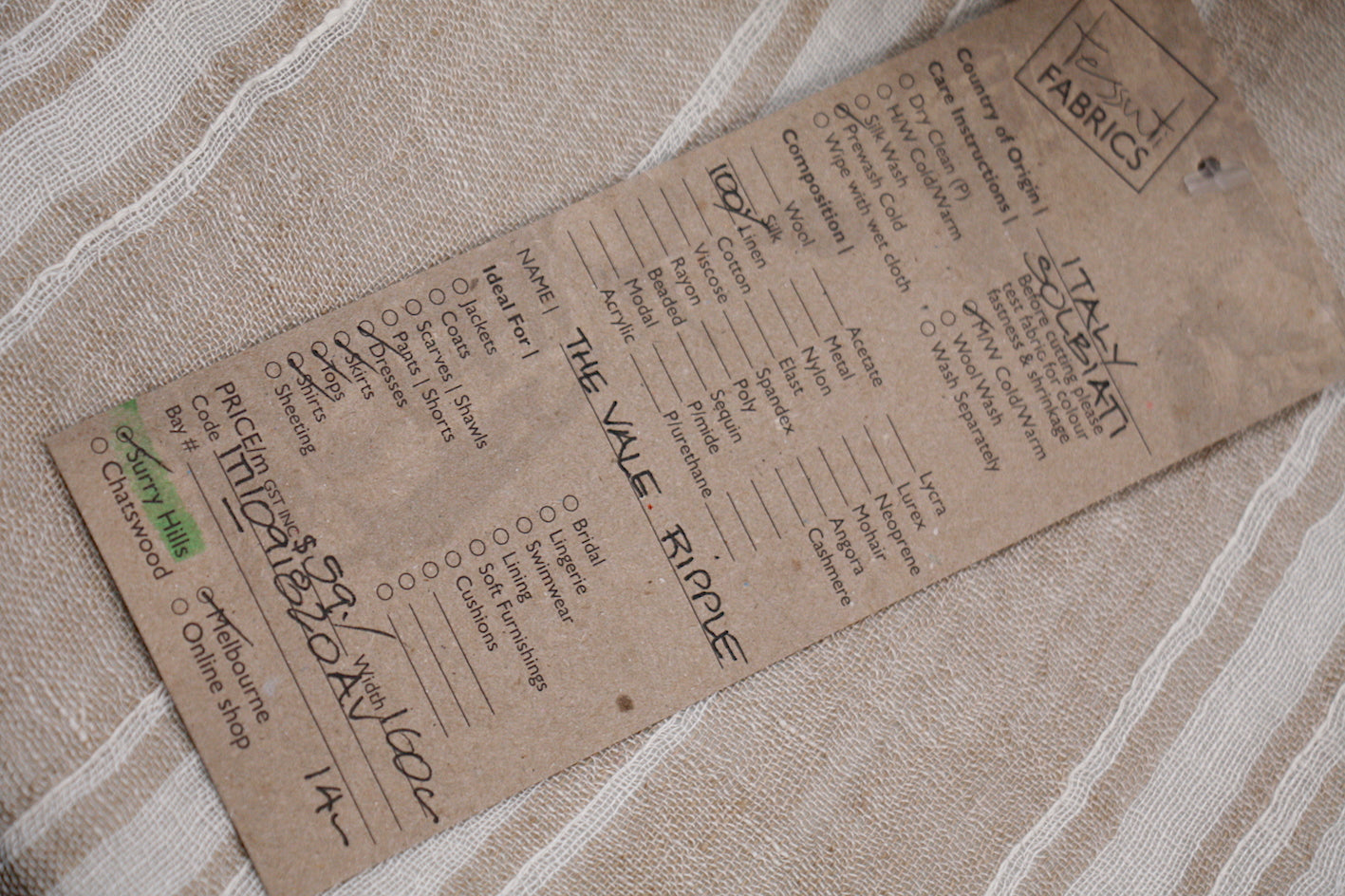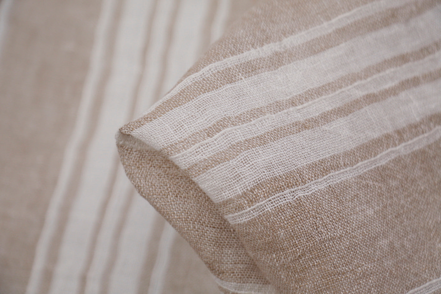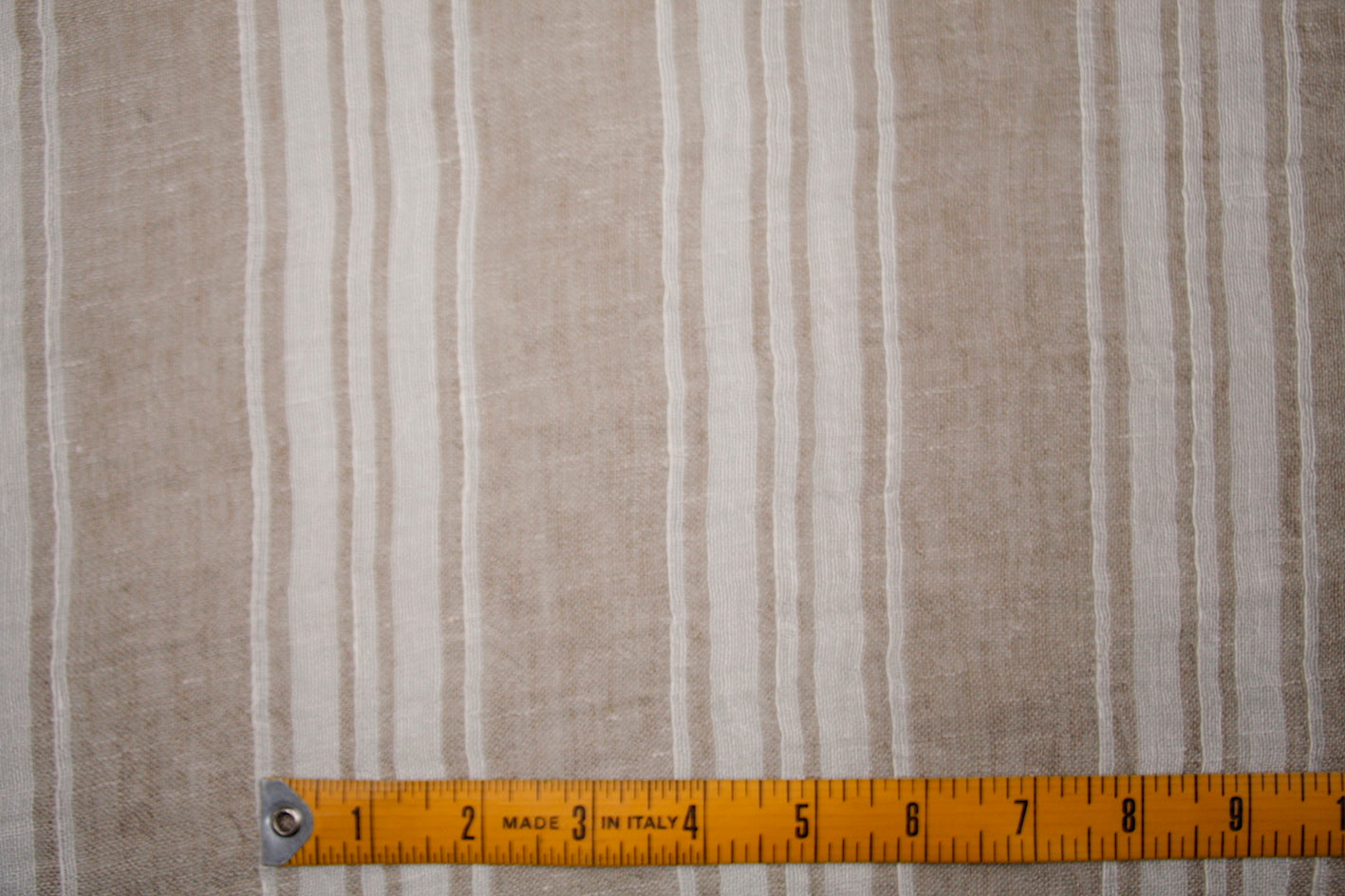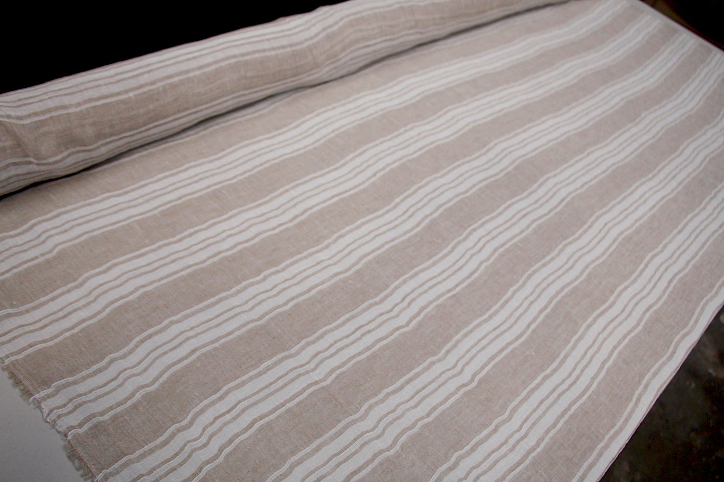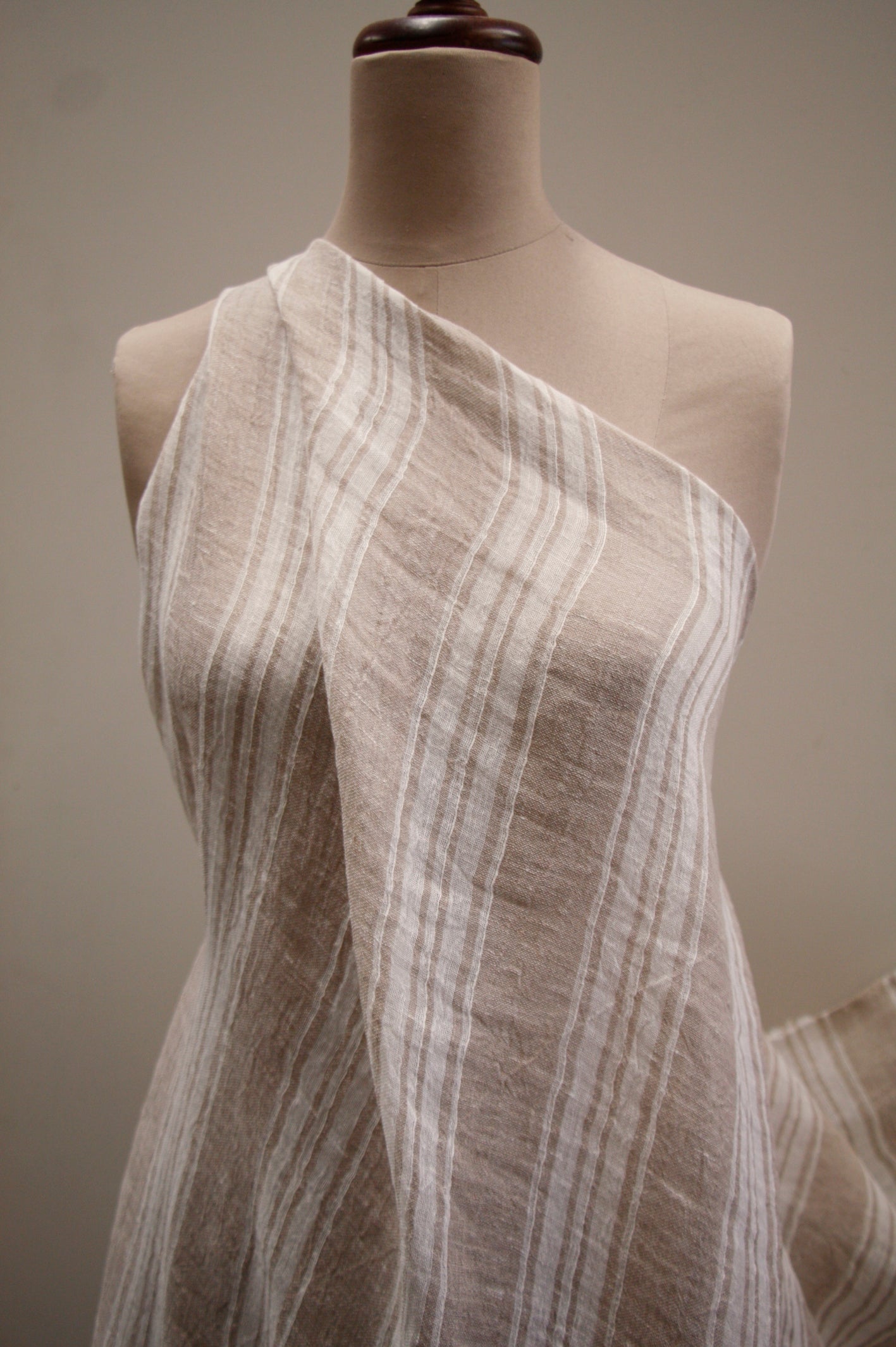 Biscuit/ white yarn-dyed striped Italian 100% linen gauzette. Width: 160cm