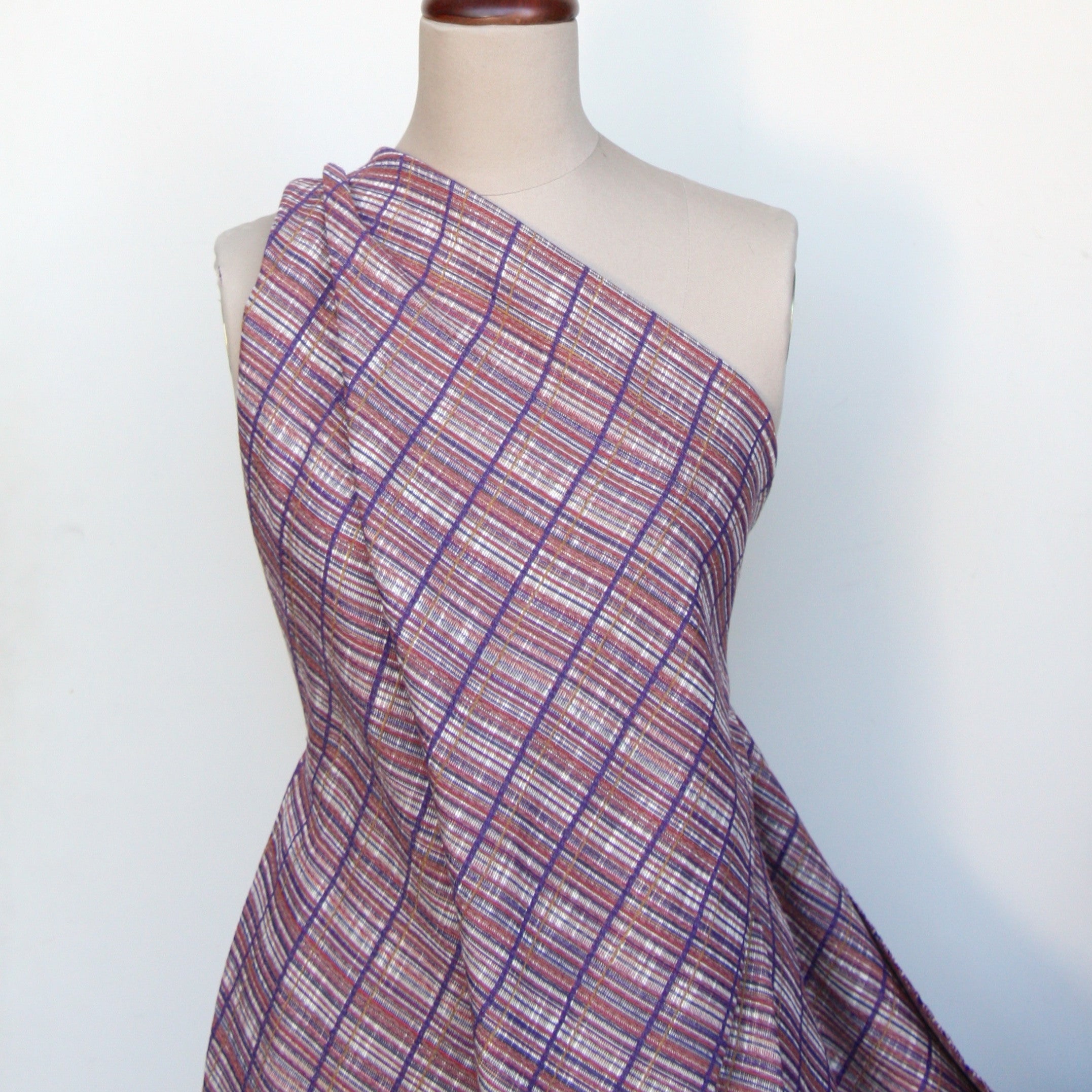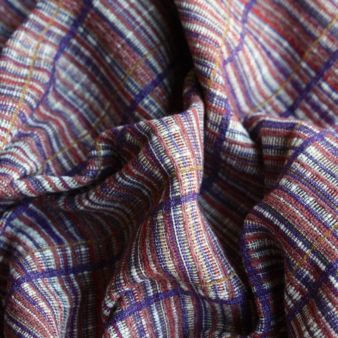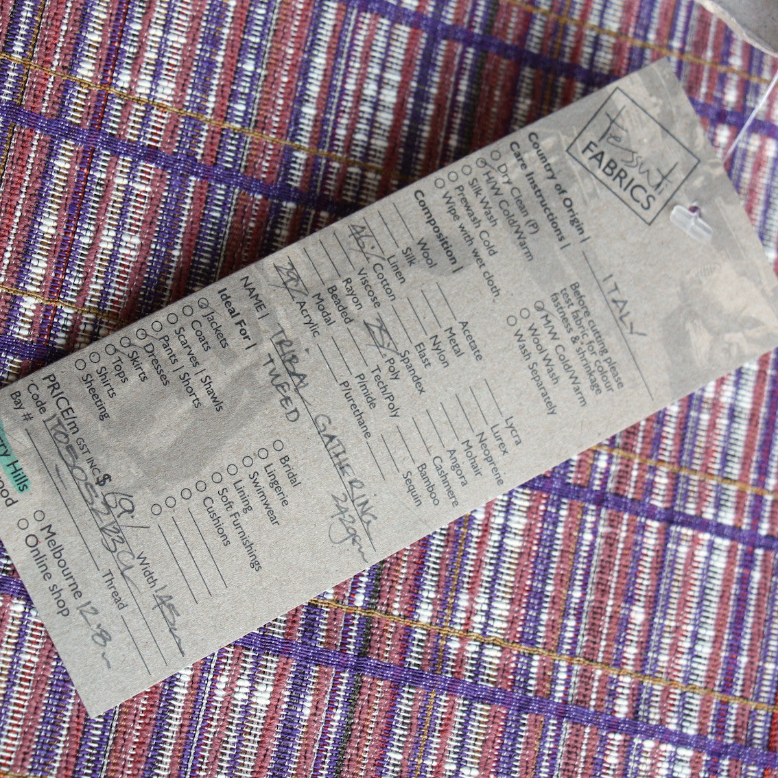 Italian designer tan/purple 46% cotton 25% polyester 29% acrylic tweed.